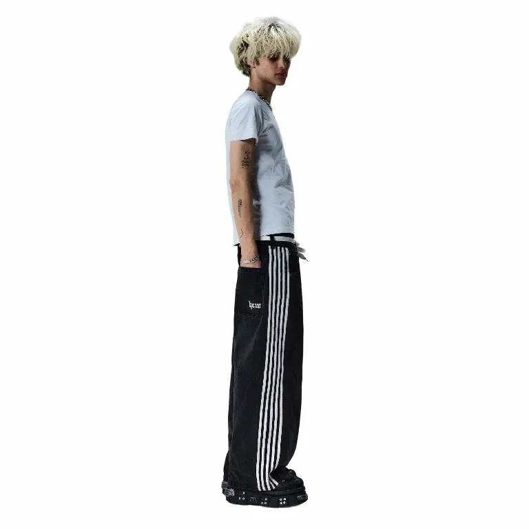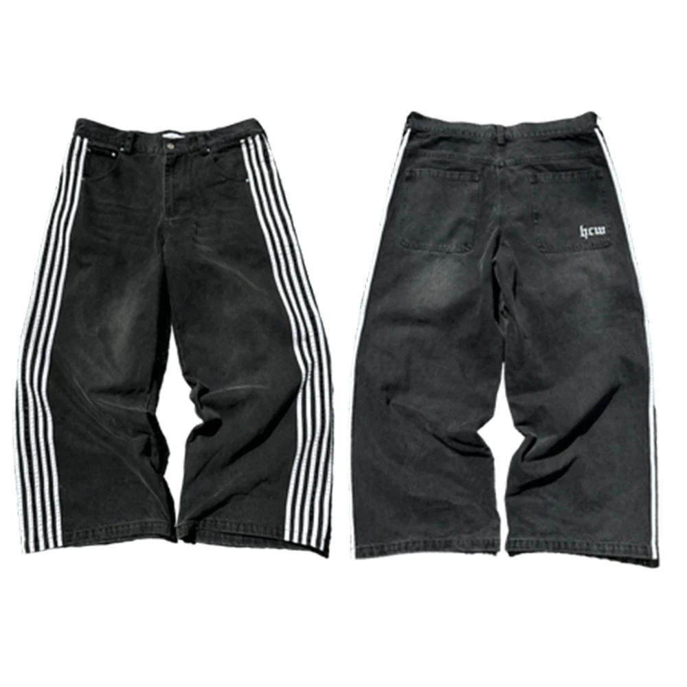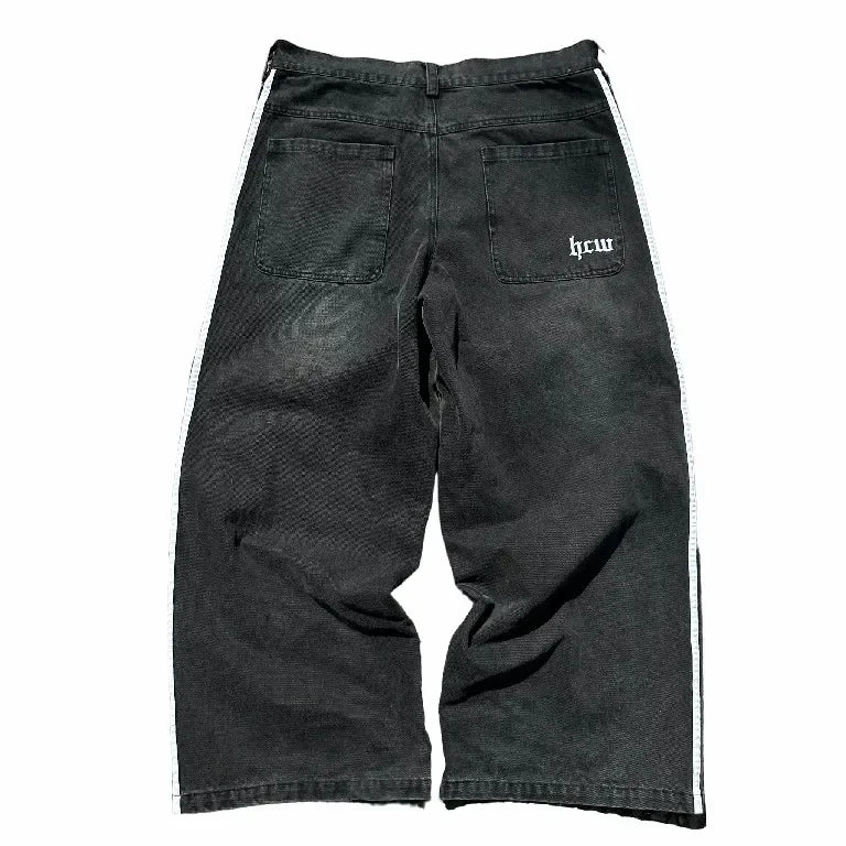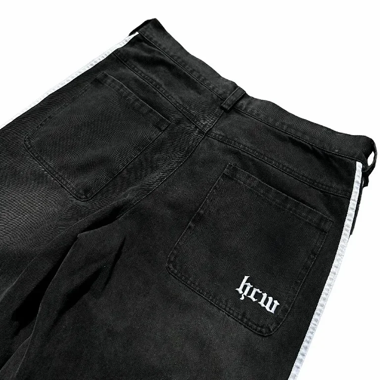 Streetwear Hwc Jeans Y2K Harajuku Hip Hop Striped Baggy Jeans Black Pants Mens Womens New High Waisted Wide Leg Trousers Clothes