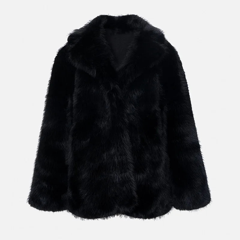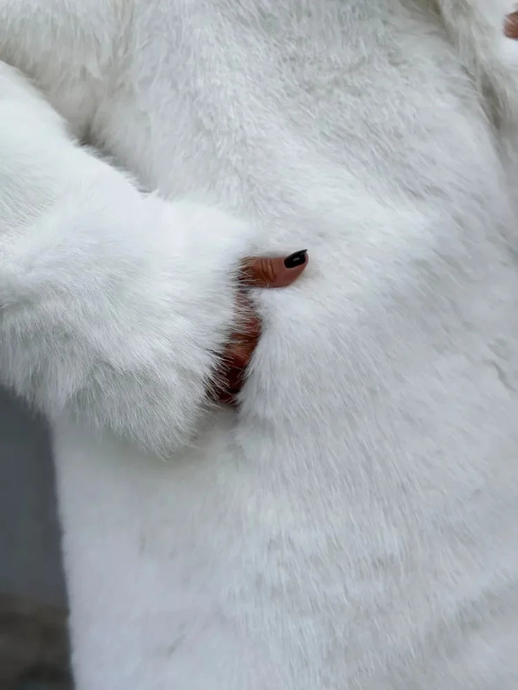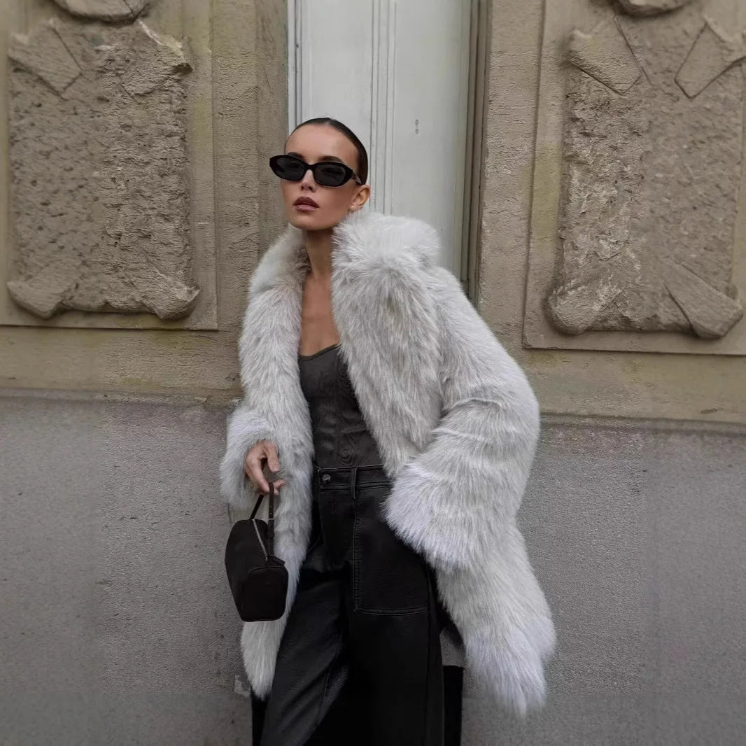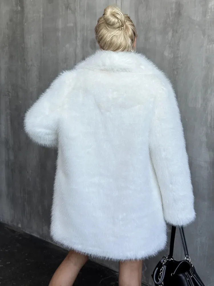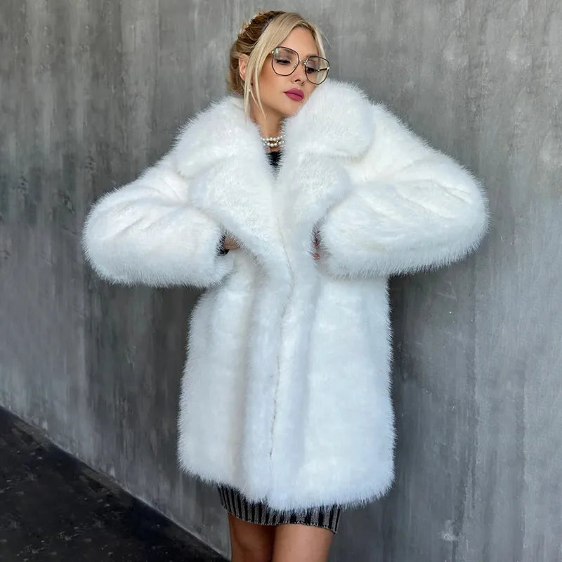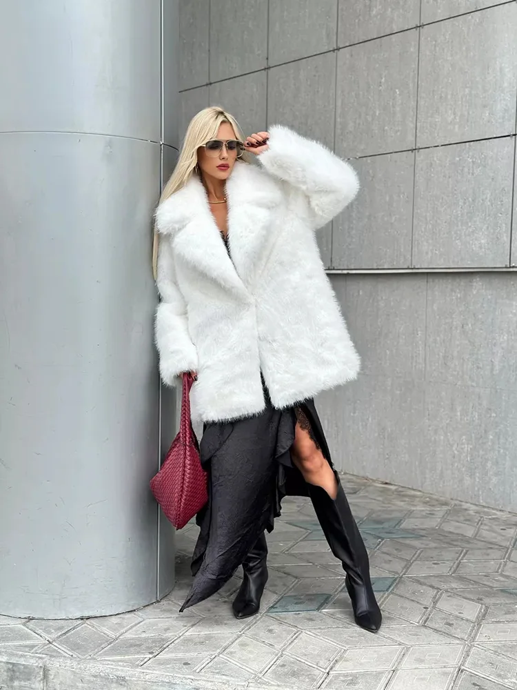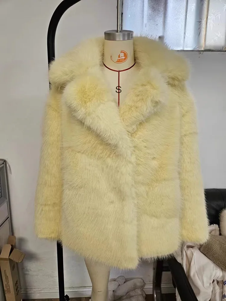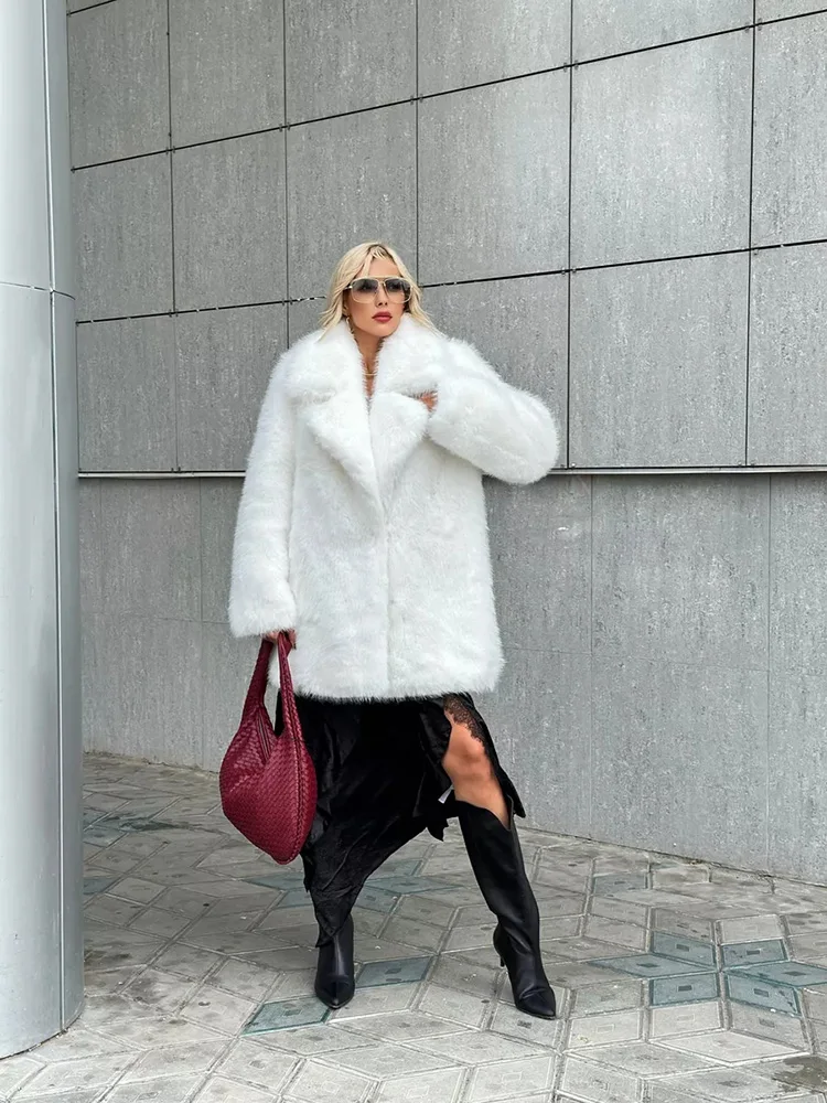 DERMEARNE TARUXY 2025 Winter Imitation Fox Fur Mid-length Coat For Women Fashion Artificial Lapel Thicken Streetwear Faux Fur Jacket Lady