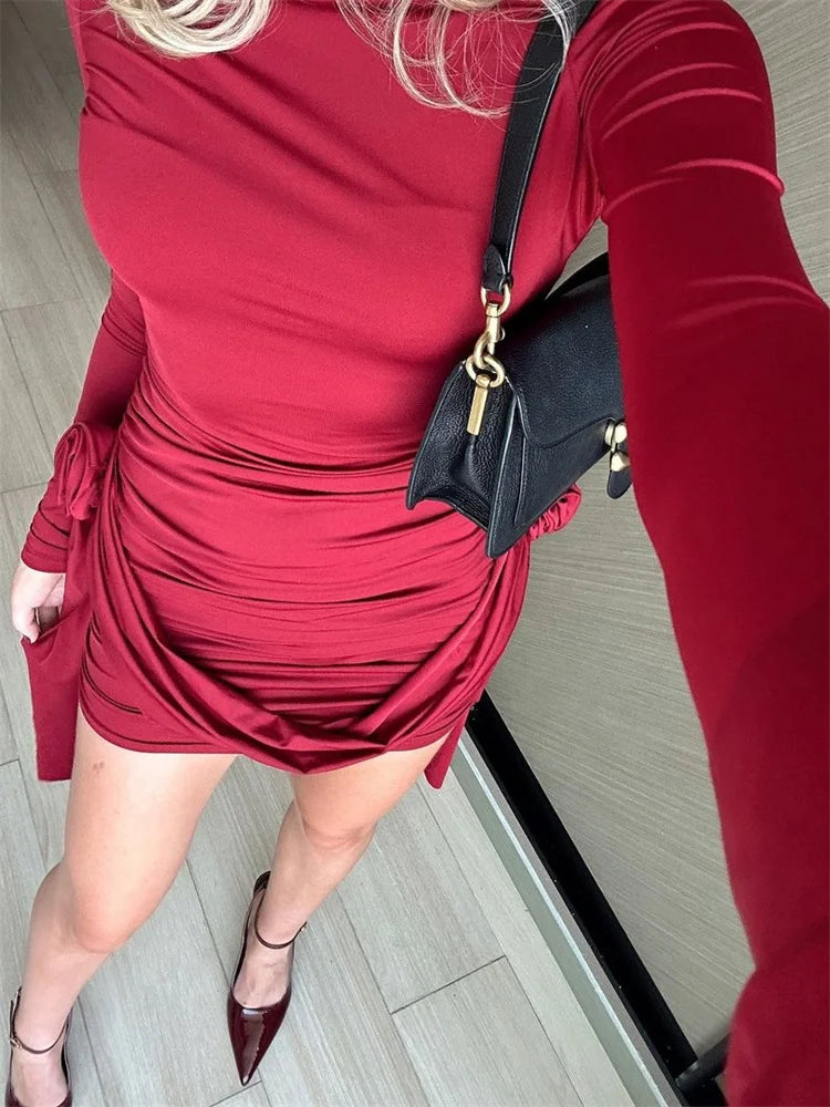 DERMEARNE Tossy Floral Fashion Pleated Mini Dress For Women Slim High Waist Solid Casual Autumn 2025 Sexy Dress Female Bodycon Dress New