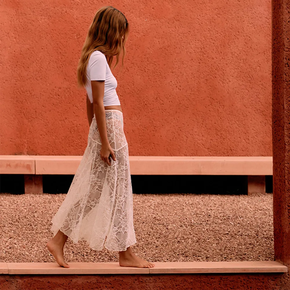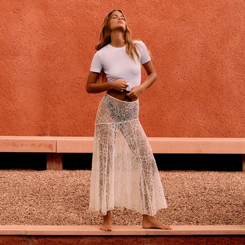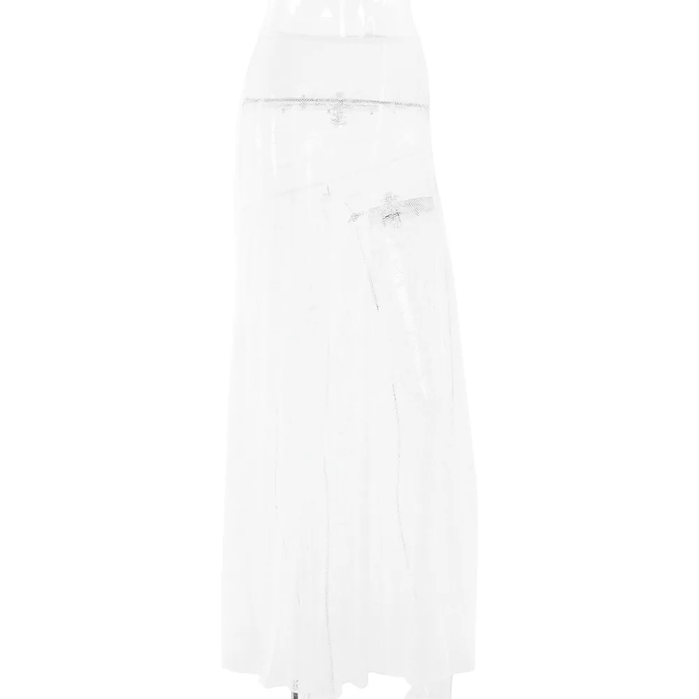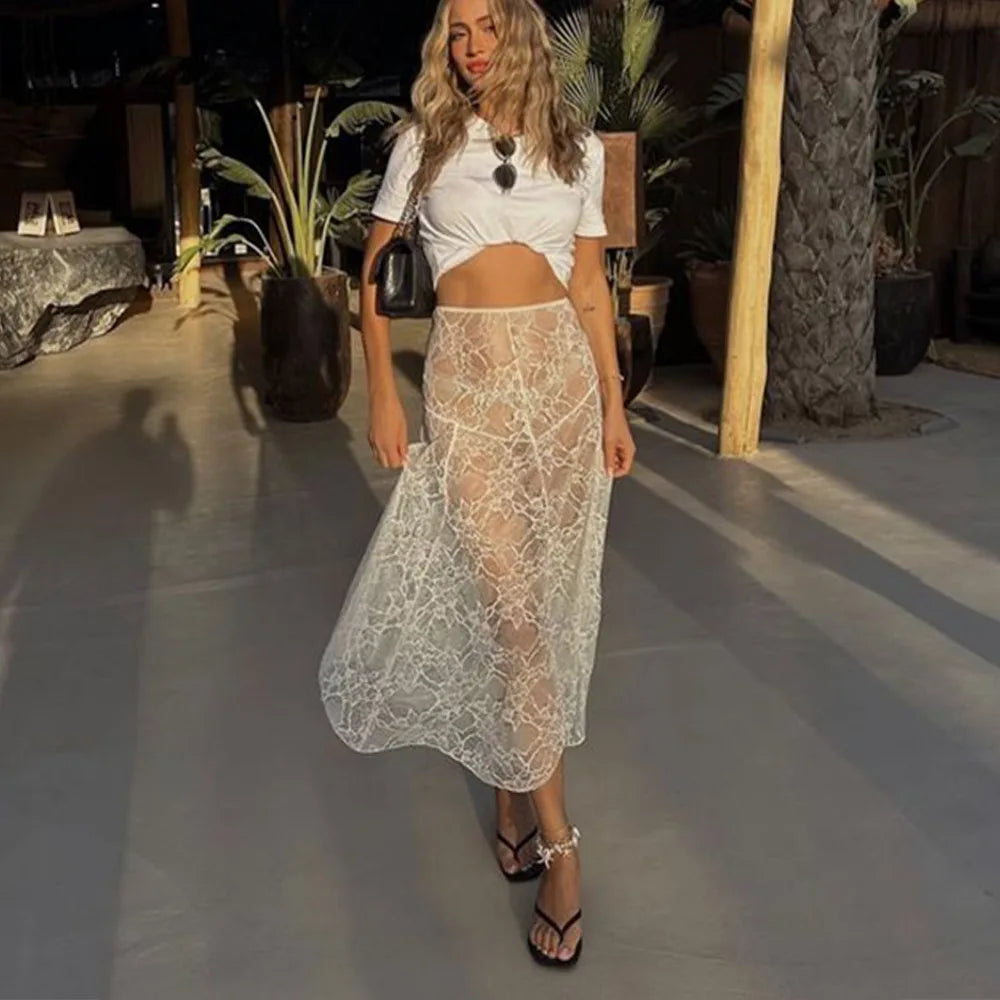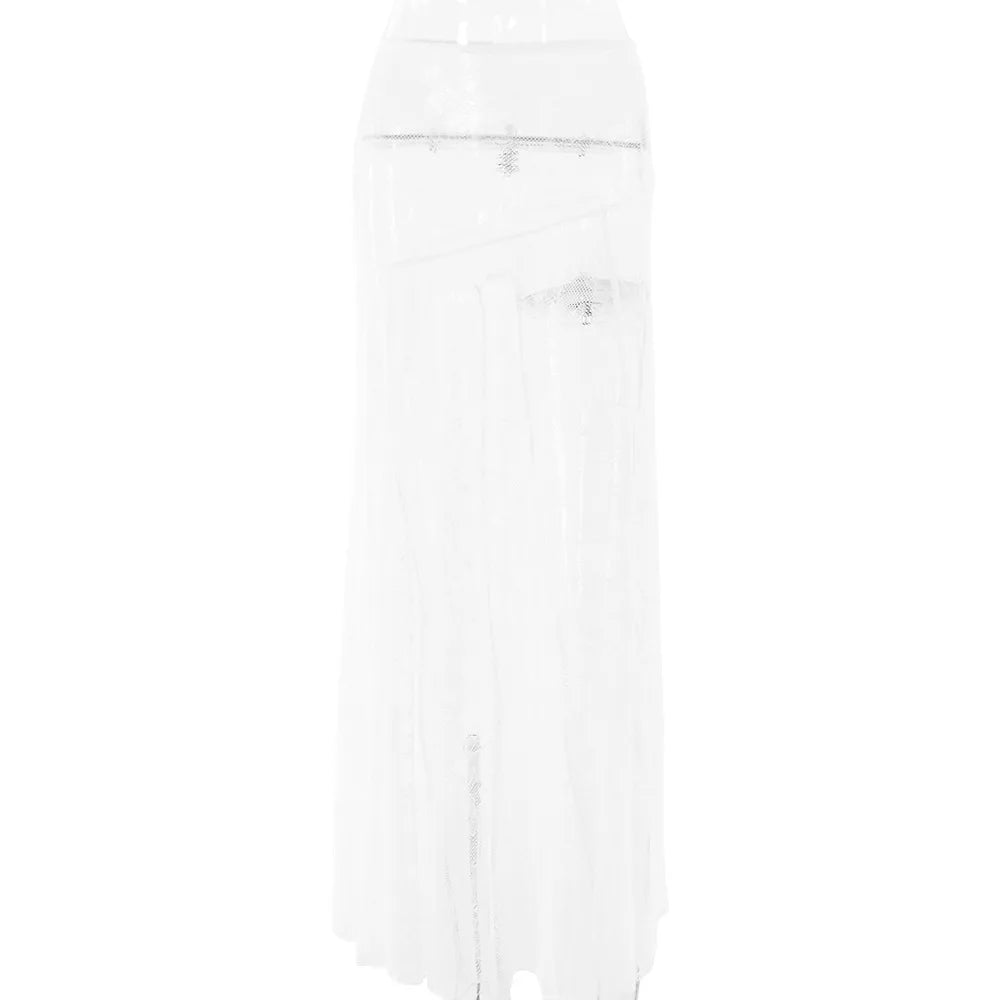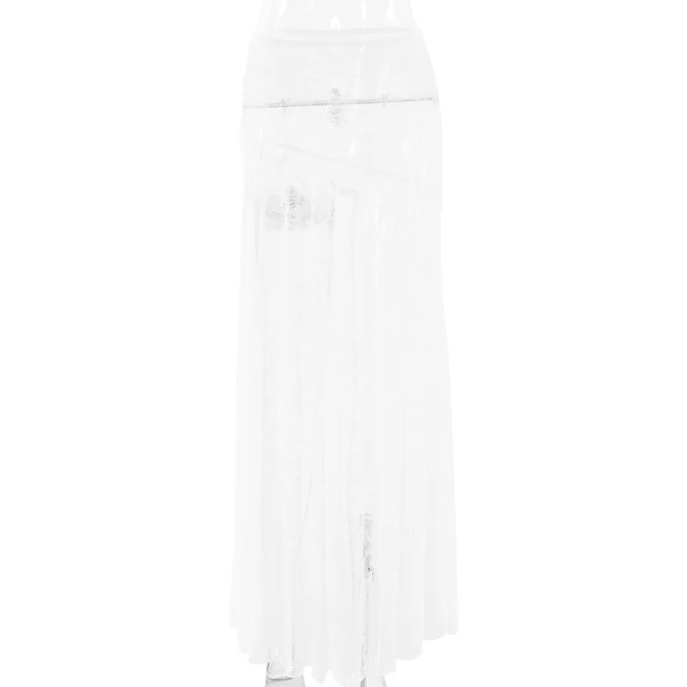 DERMEARNE White Lace Maxi Skirt Women Sexy See Through Beach Bikini Cover Up Skirts Summer Casual Loose High Waist Holiday Skirt 2025