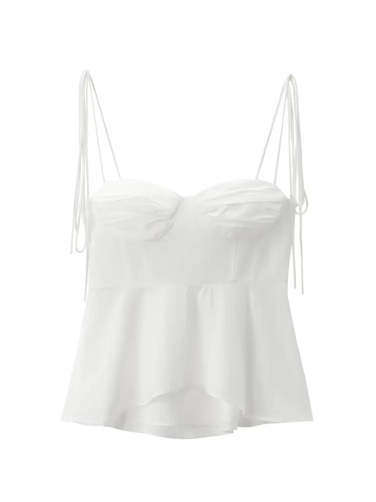 DERMEARNE White Smocked Strappy Camisole Women's Sexy Sleeveless Ruffle Slim Bra Solid Color Streetwear Y2k Women's Tops Camisole