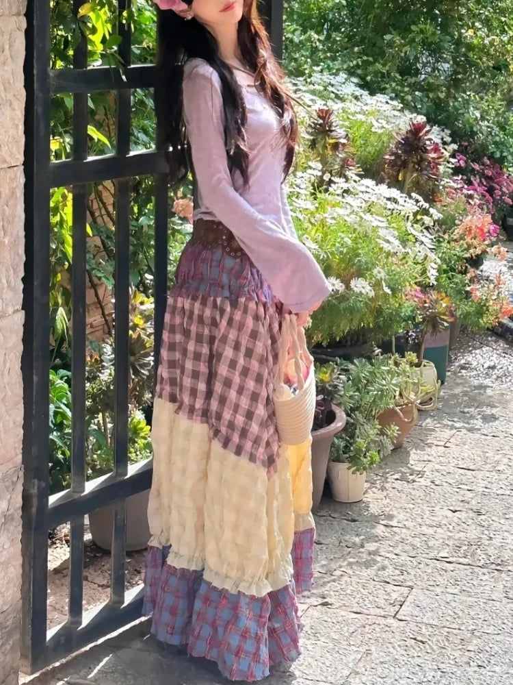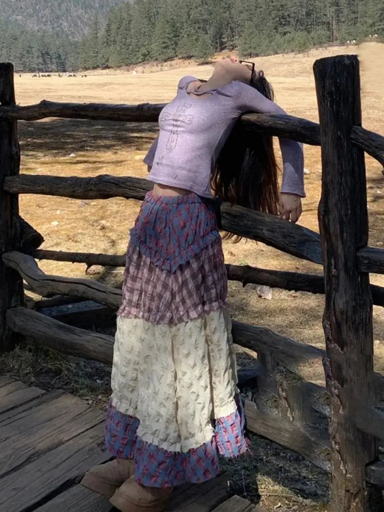 DERMEARNE Winter Fashion Boho Holiday 2 Piece Set Female Set Women Y2k Printing Suit Female Halter Long-sleeved T-shirt+Slim A-line Skirt