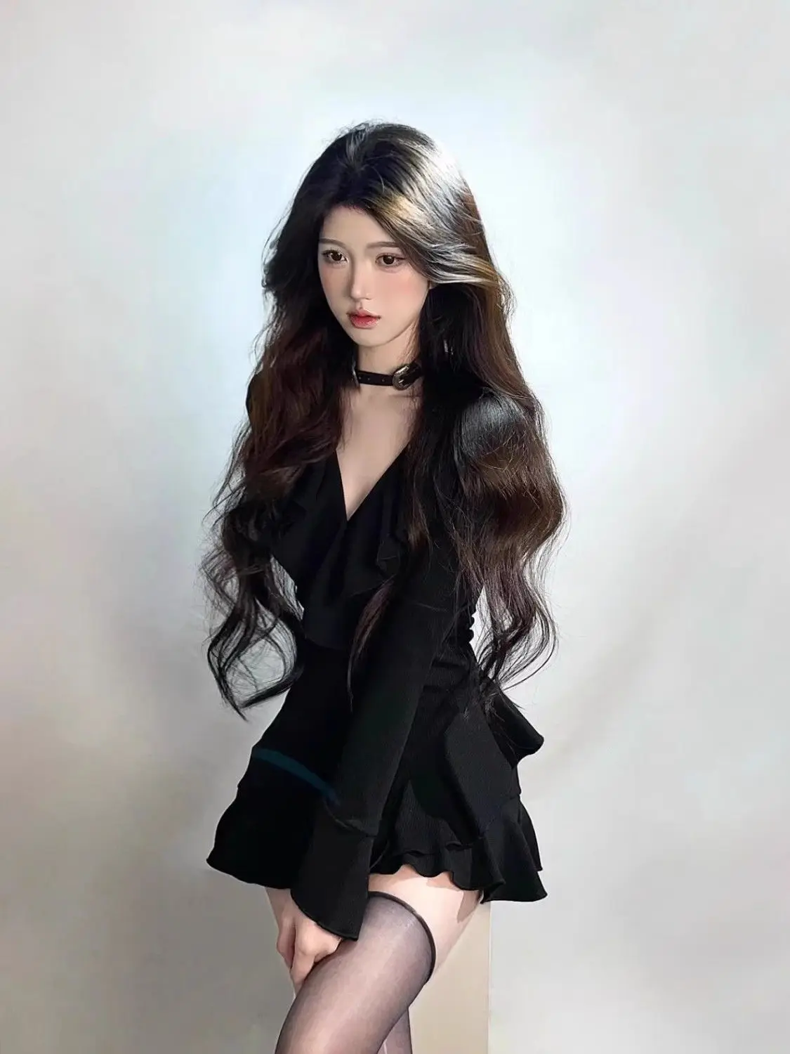 DERMEARNE Winter Sexy Black Knitted Mini Dress Women Vintage V-neck Irregular Ruffles Design Dress Autumn French Elegant Chic Party Dress