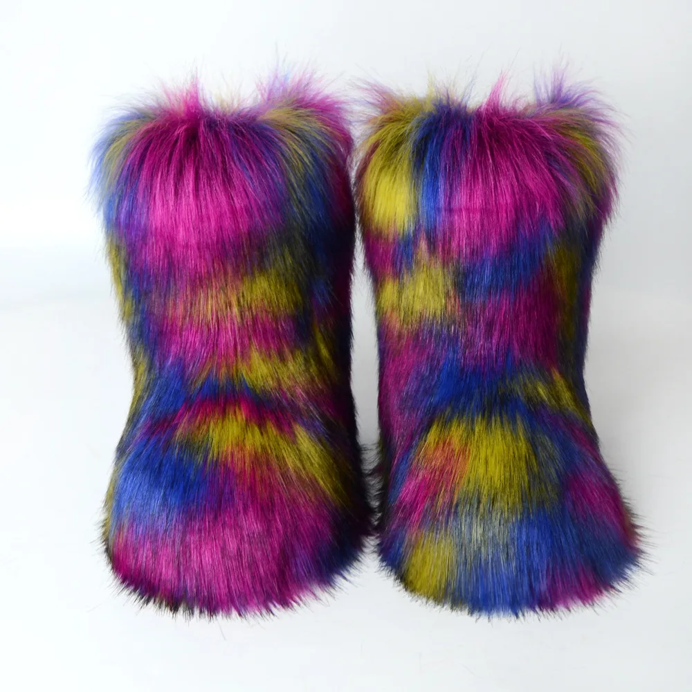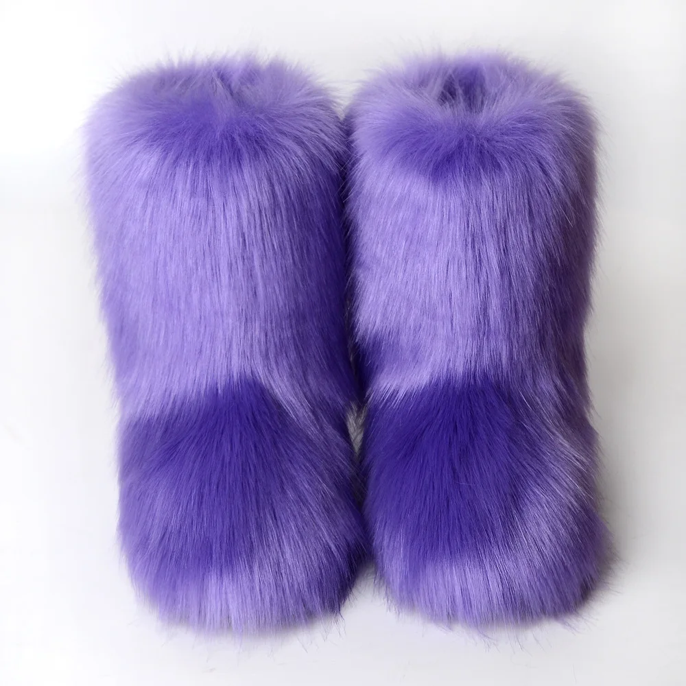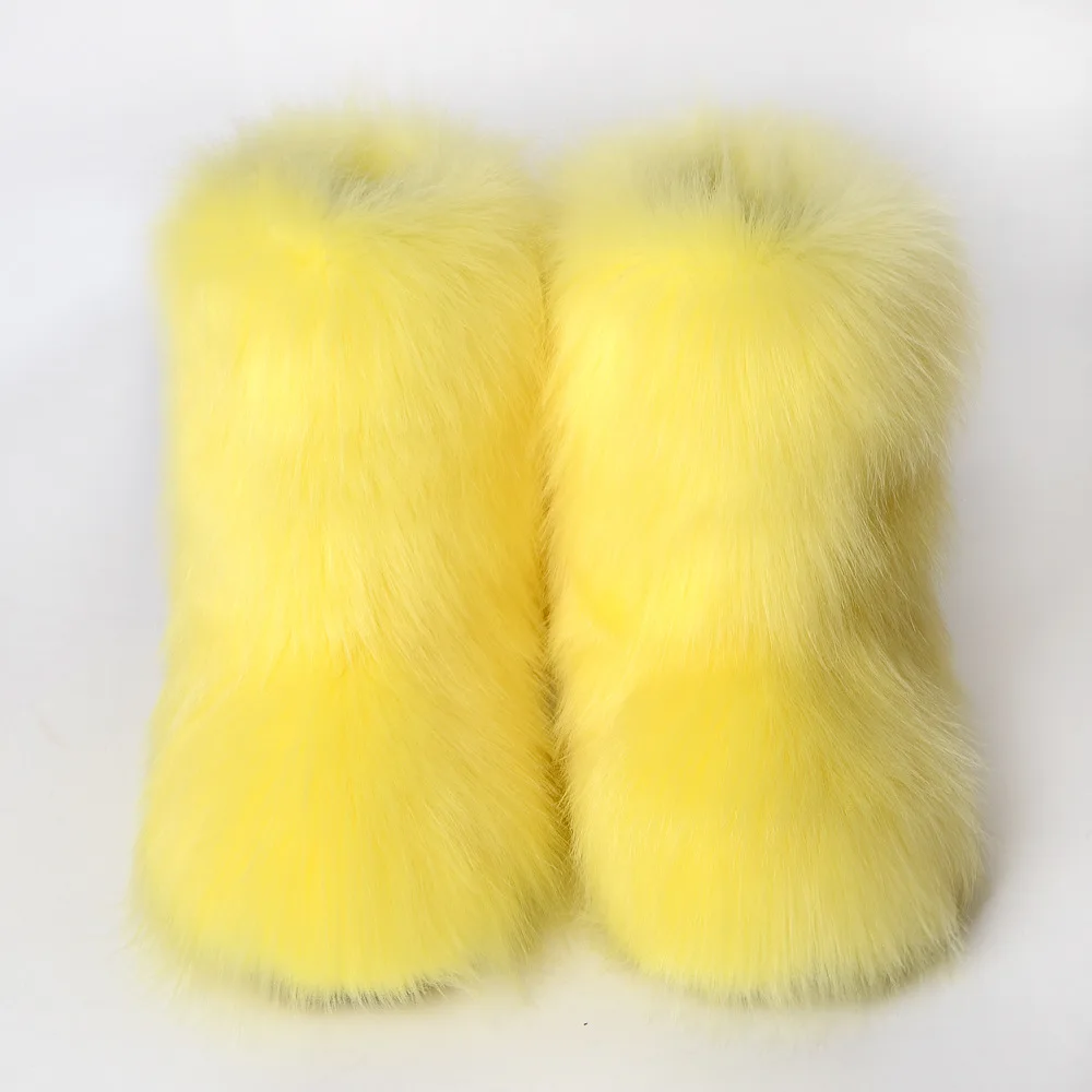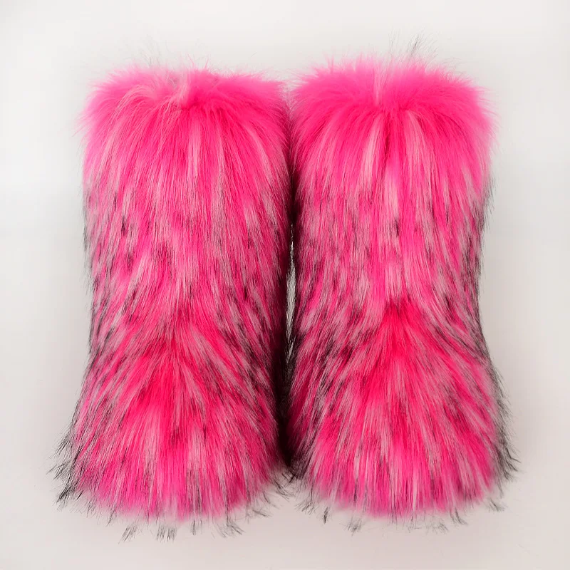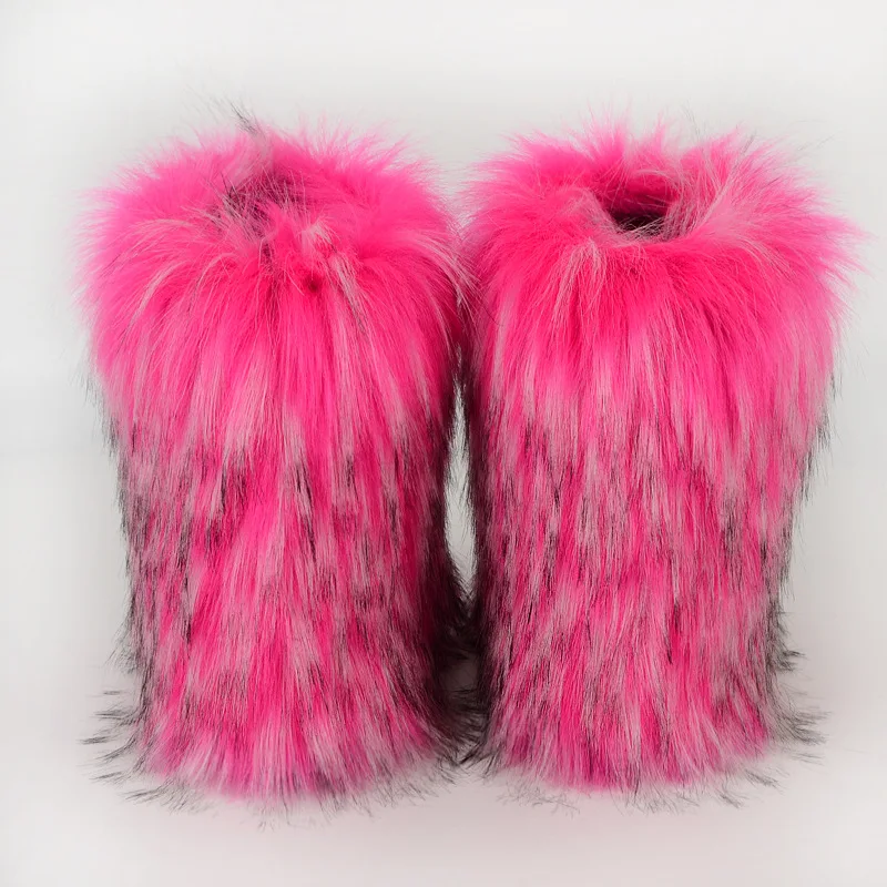 Women's Winter Snow Boots Outdoor Luxury Furry Faux Fox Fur New Fashion Boots WomanPlush Warm Platform Shoes Bottes