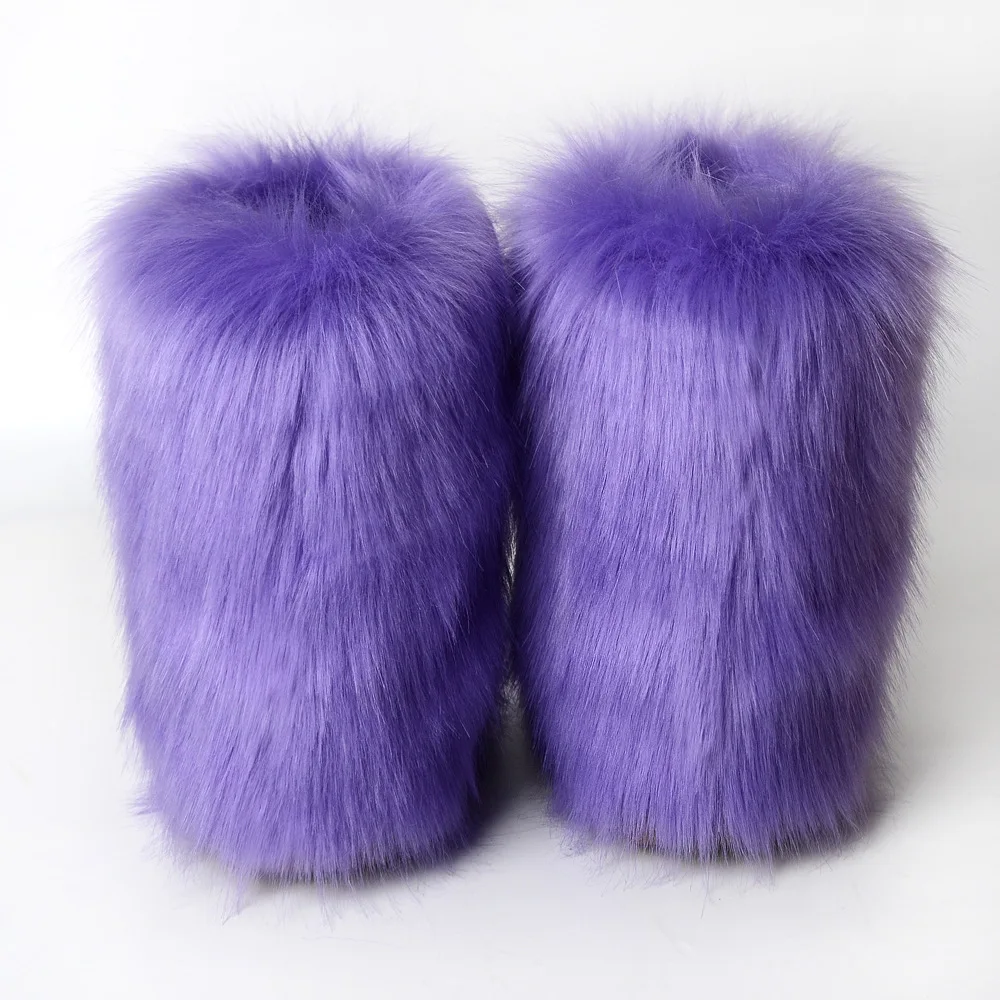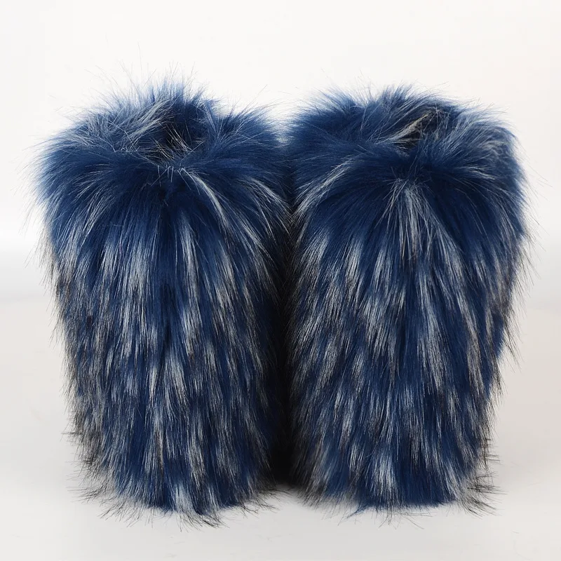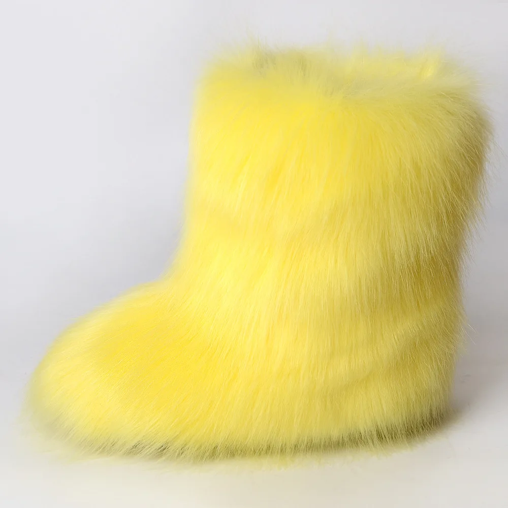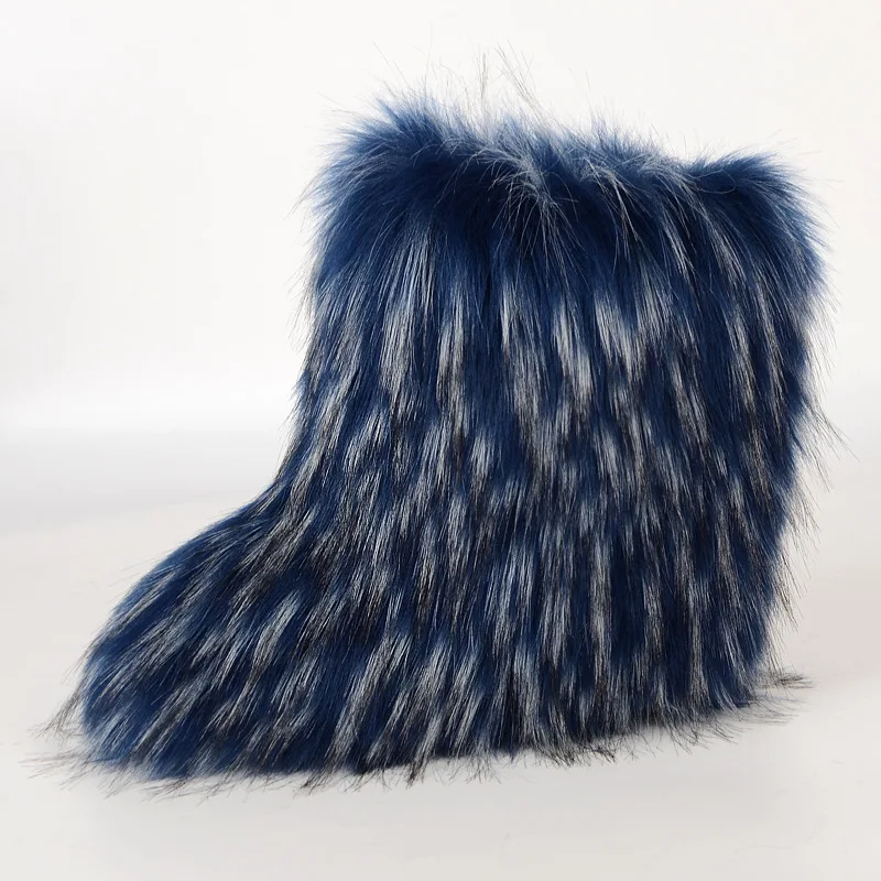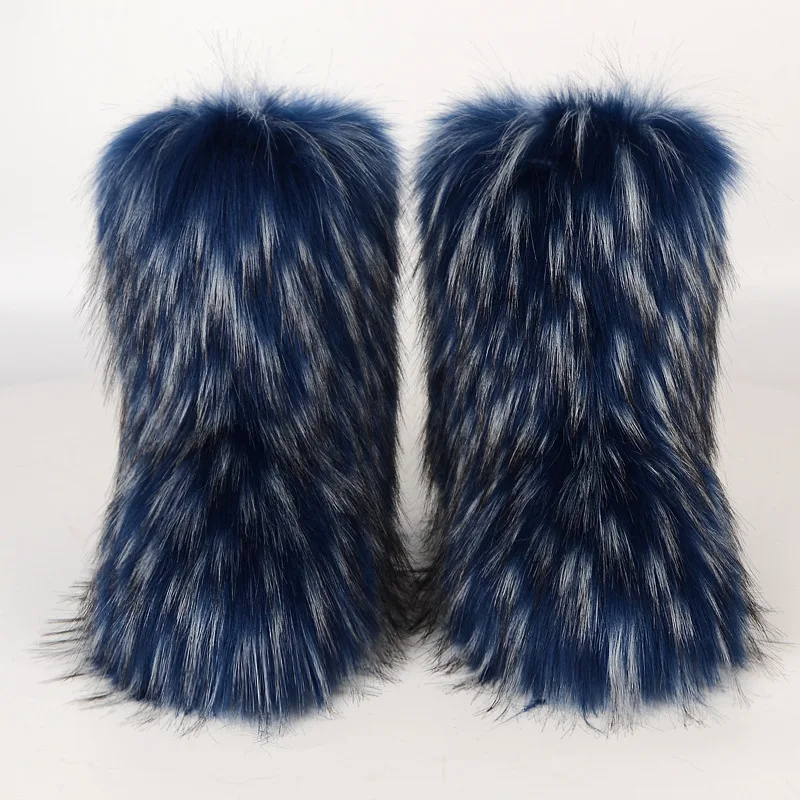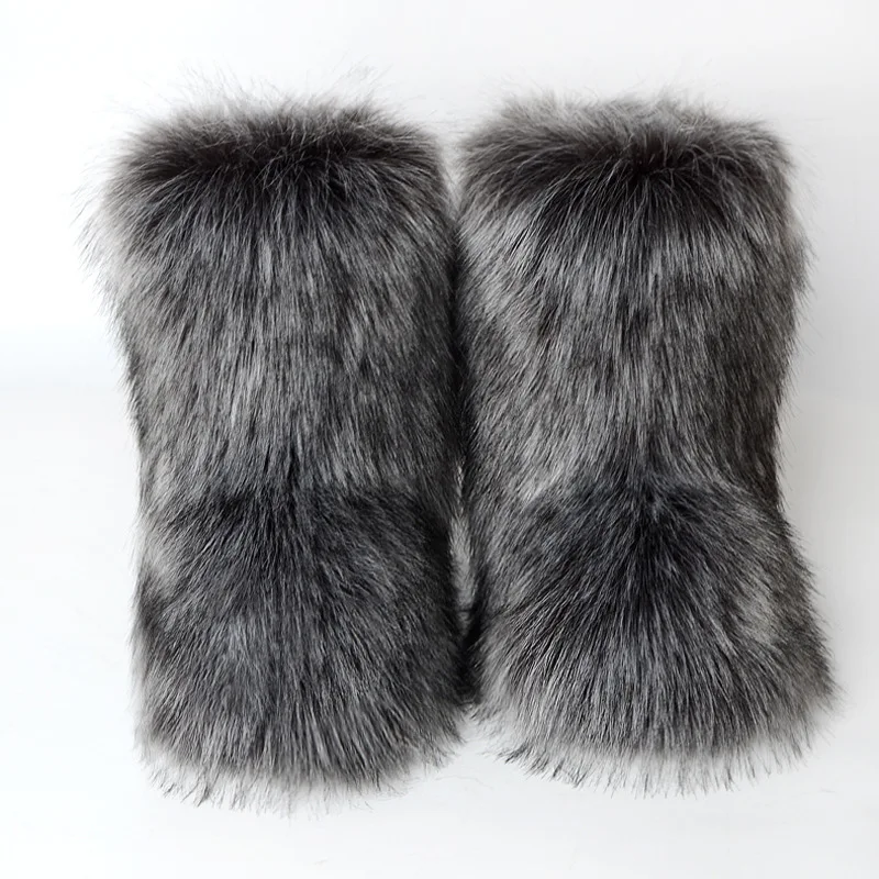 Women's Winter Snow Boots Outdoor Luxury Furry Faux Fox Fur New Fashion Boots WomanPlush Warm Platform Shoes Bottes