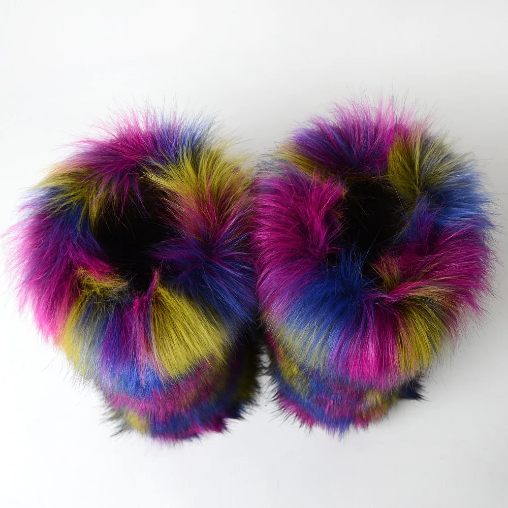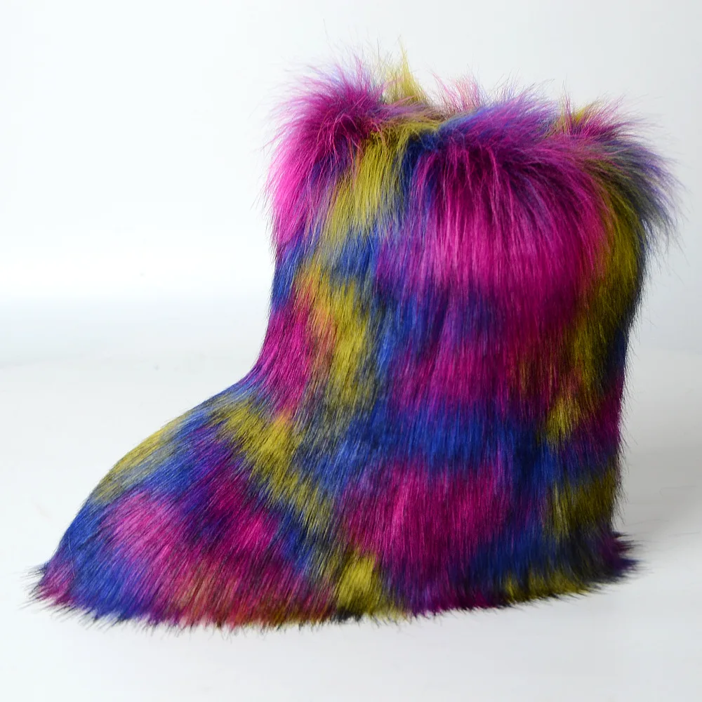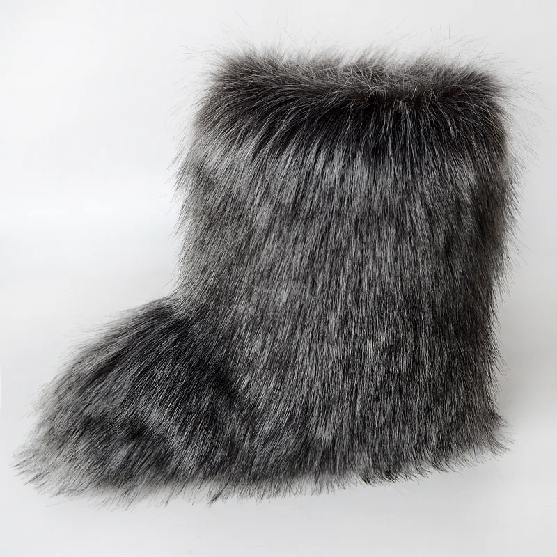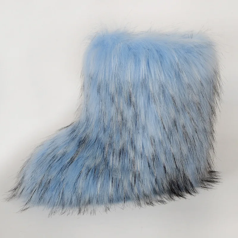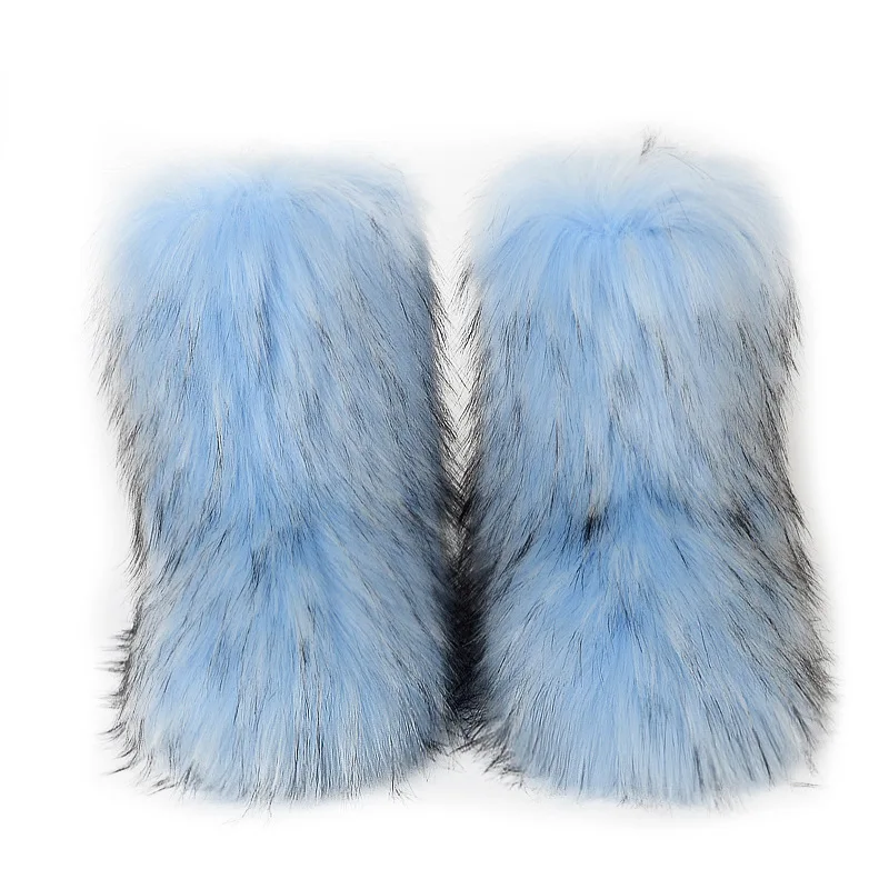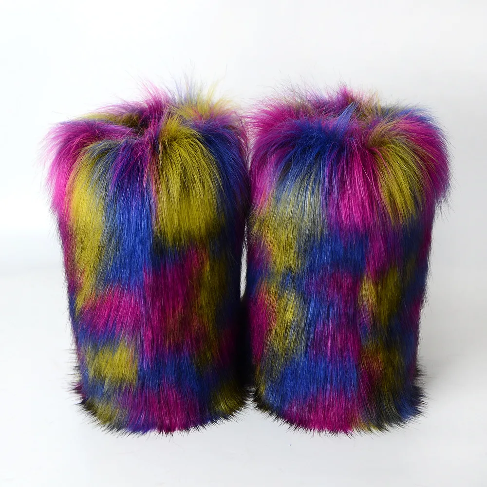 Women's Winter Snow Boots Outdoor Luxury Furry Faux Fox Fur New Fashion Boots WomanPlush Warm Platform Shoes Bottes