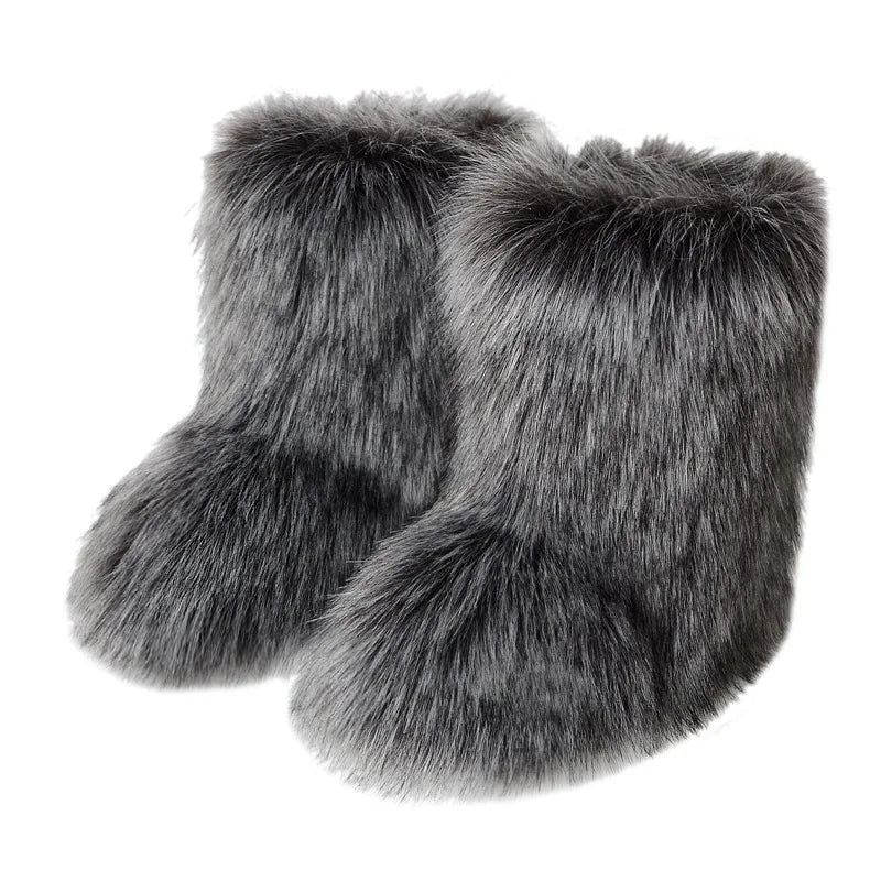 DERMEARNE Winter Shoe Women's Winter Fluffy Faux Fox Fur Boots Woman Plush Warm Snow Boots Luxury Footwear Girls' Furry Fur Bottes