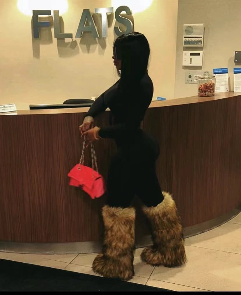 DERMEARNE Winter Women Snow Boots Faux Fur Long Boots Warm Plush Platform Knee-high Boot Outdoor Furry Cute Over-the-knee Boots Girls Y2K