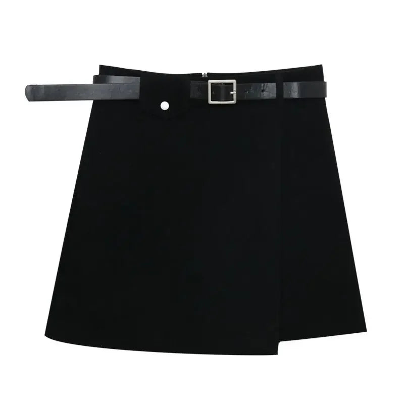 DERMEARNE With Belt Autumn and Winter High Waist A- line Skirt Black Skirt for Women Woman Skirts Faldas Jupe