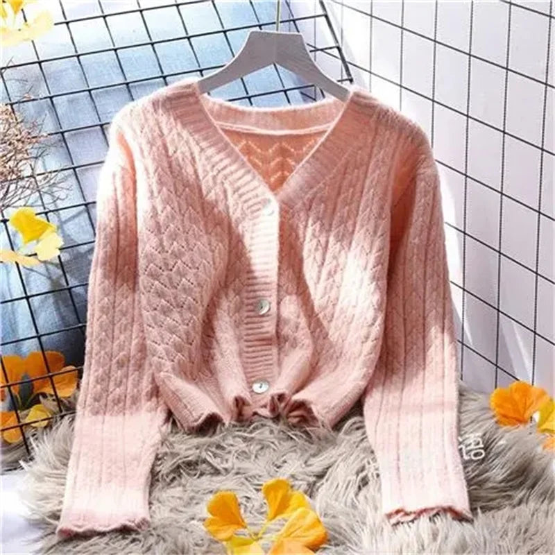 DERMEARNE Women Cardigans Autumn Winter 2025 Single Breasted V-neck Knitted Sweater Spring Fashion Short Knitwear Solid Cardigan Jumpers