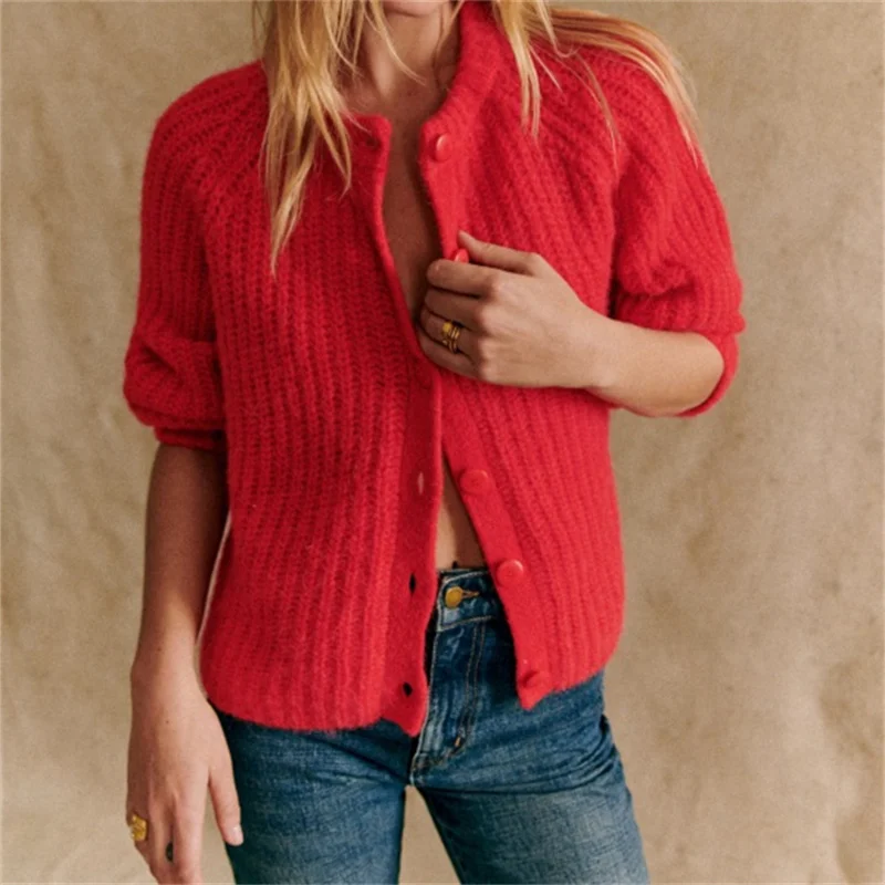 Women's Sweater Cardigan Loose Solid Color Crew Neck Long Sleeve Button Down Knit Tops for Fall Winter