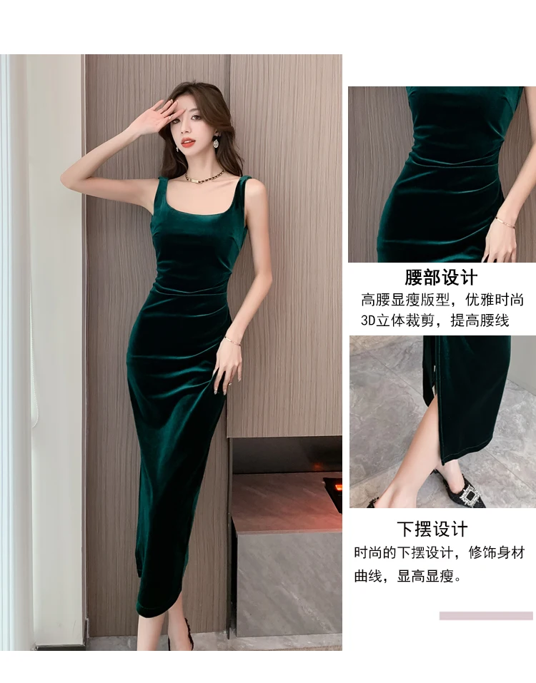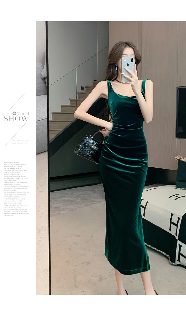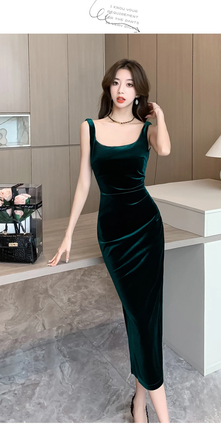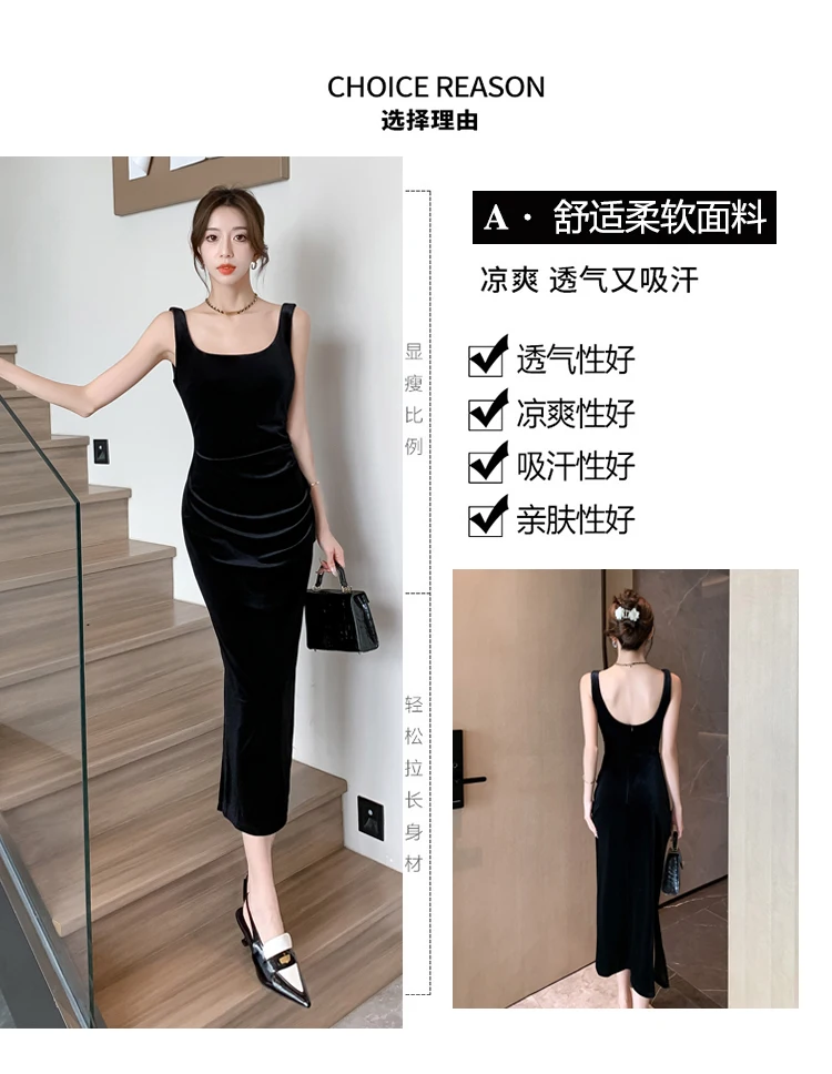HUTI WJWYL New Arrival High Quality Women Korean Vintage Luxury Evening Dress Gown Autumn Winter Black Velvet Sling Sexy Dresses Elegant Bodycon Party Vestidos