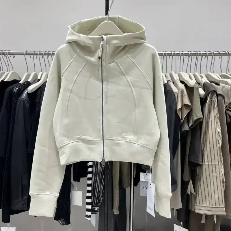 DERMEARNE Women Solid Color Hoodie Korean Edition Harajuku Gothic Casual Multi Functional Loose Y2K Zipper Short Women Long Sleeve Jacket