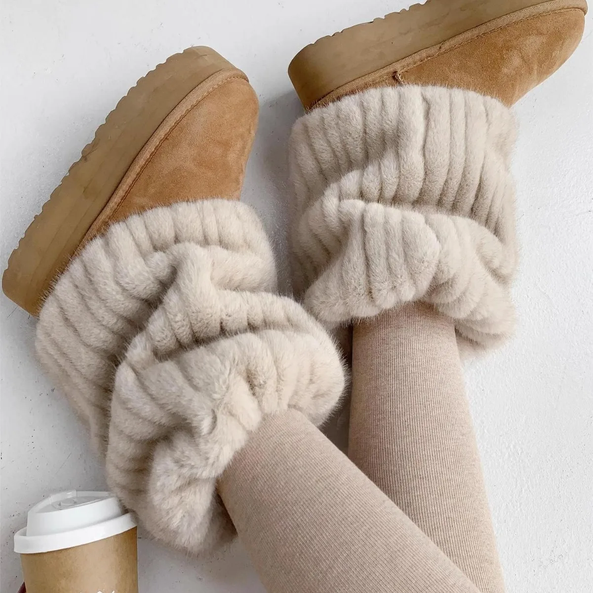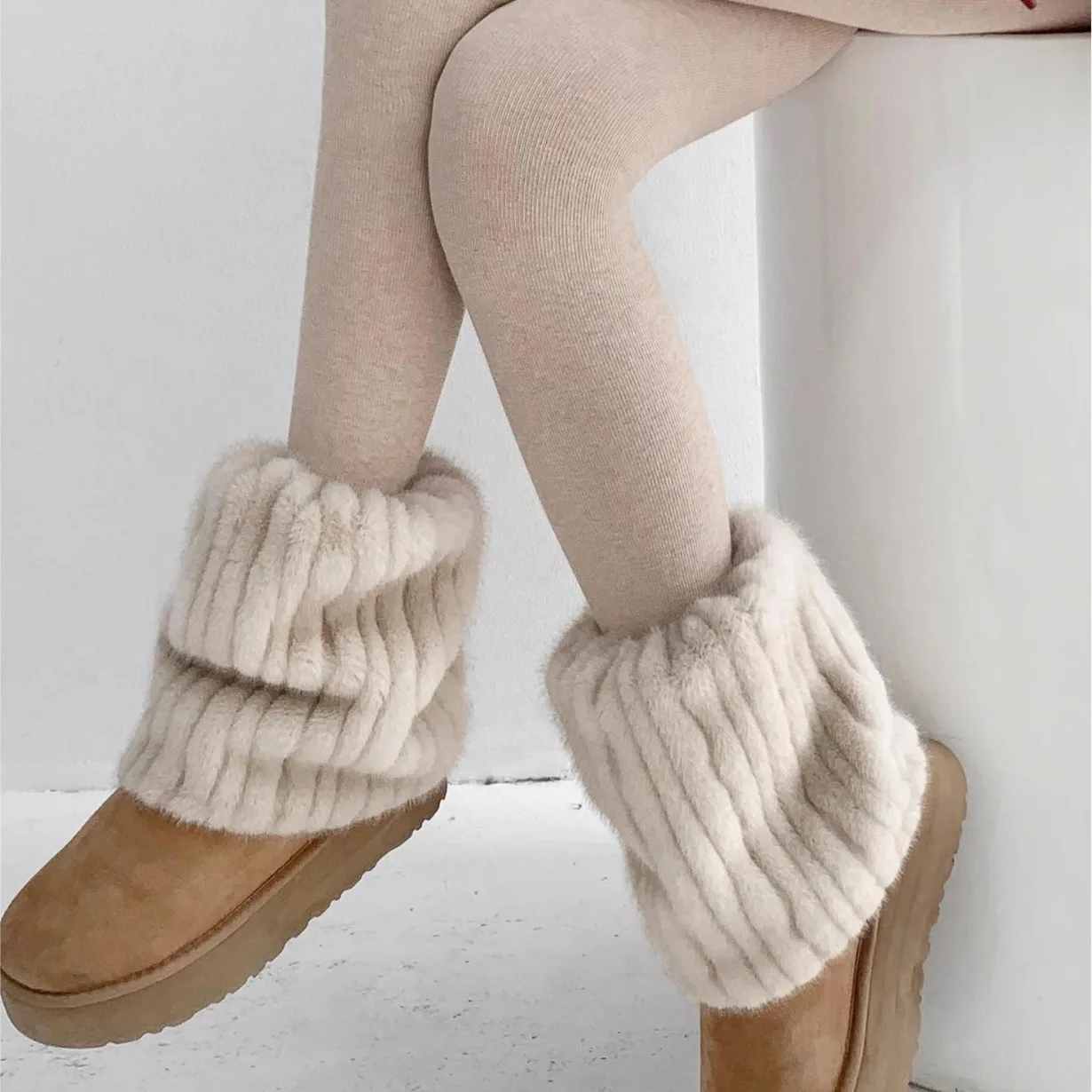 DERMEARNE Women Thickened Imitation Mink Fur Plush Leg Warmers Boots Cover Warm Leggings Boots Mid Length Socks Harajuku Party Accessories