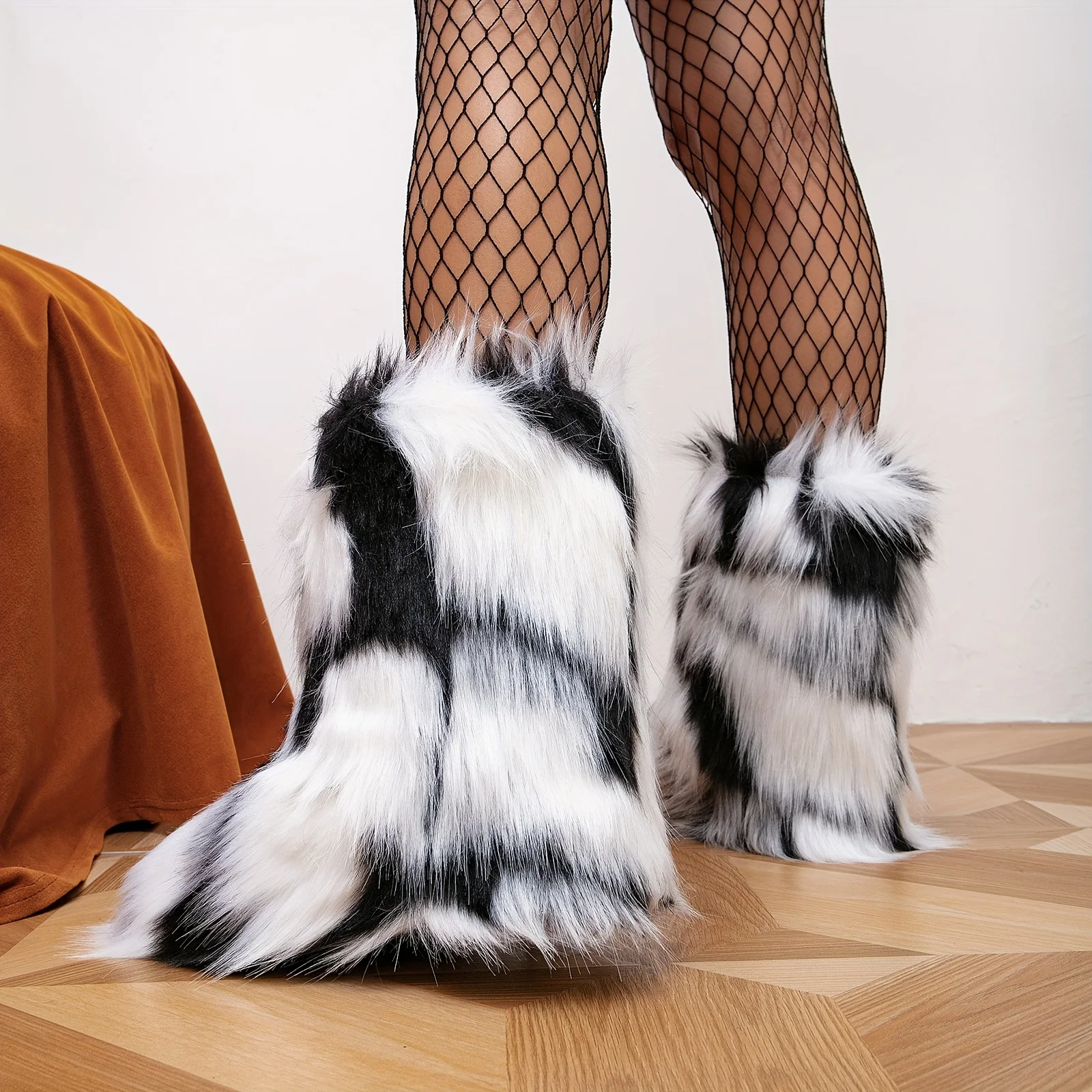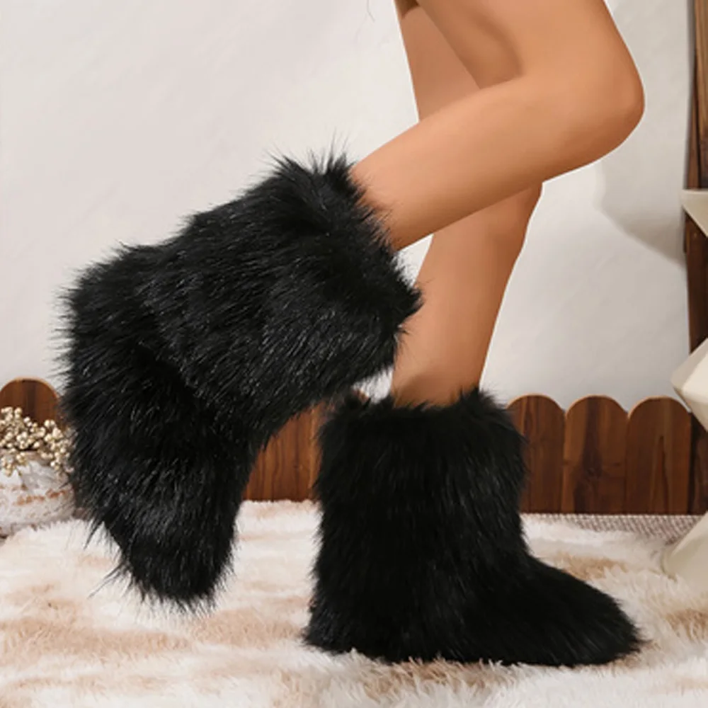 DERMEARNE Women Winter Fluffy Faux Fur Mid-Calf Snow Boots Y2K Fashion Warm Snow Boots Girl's Luxury Footwear Furry Boots Outdoor