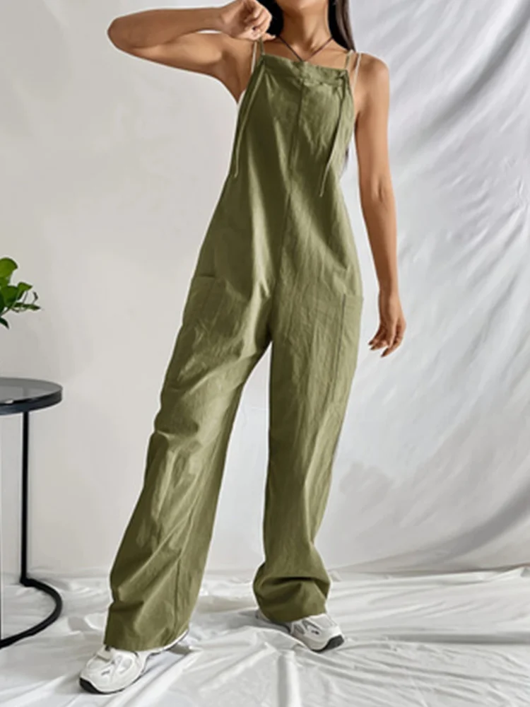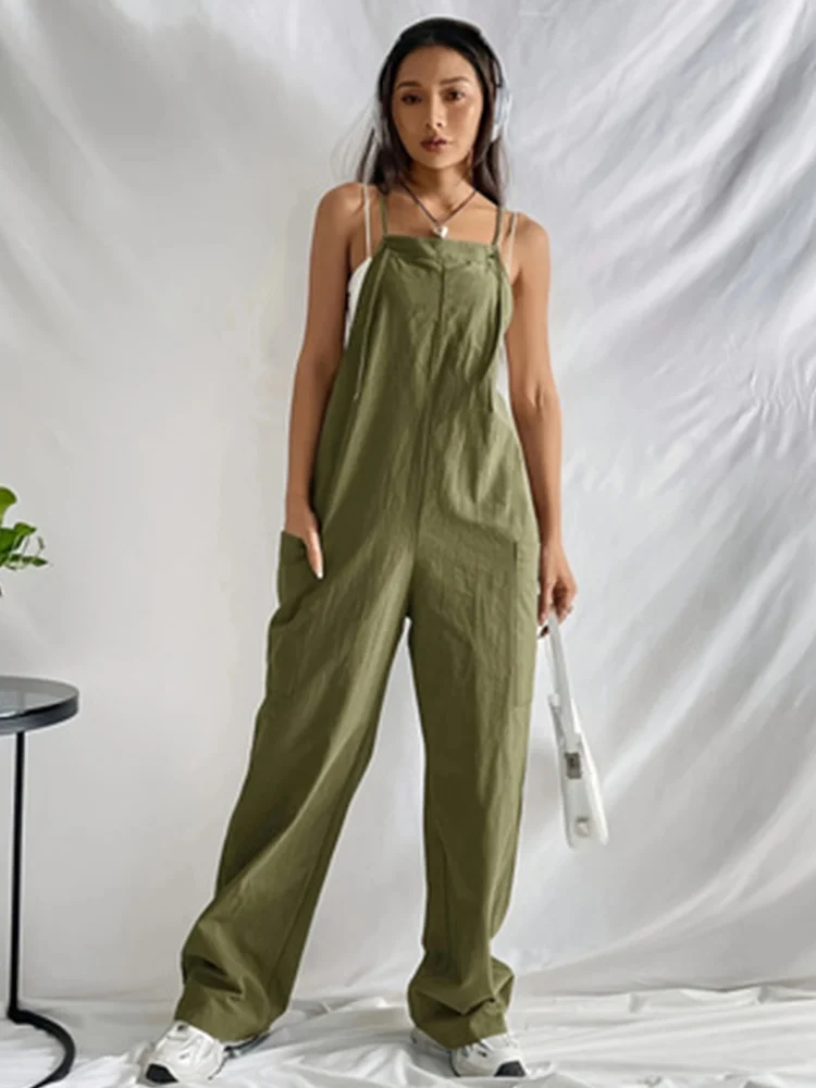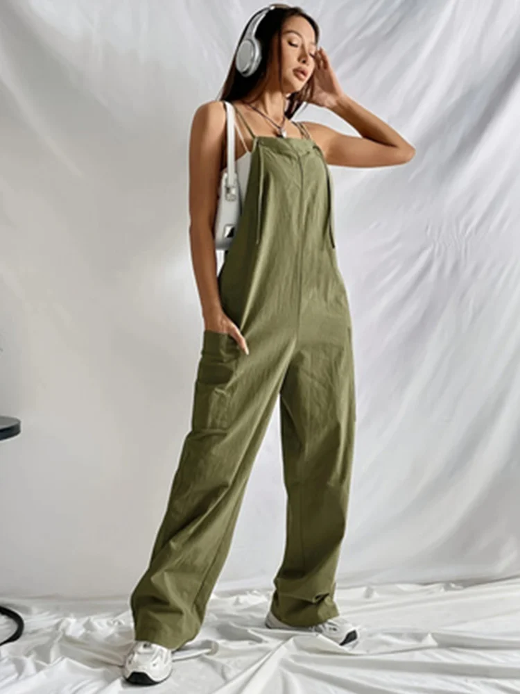 DERMEARNE Women's Casual Minimalist Suspenders Jumpsuit Wide Leg Summer Trendy Romper With Pockets 2025 Hot Fashion Trend