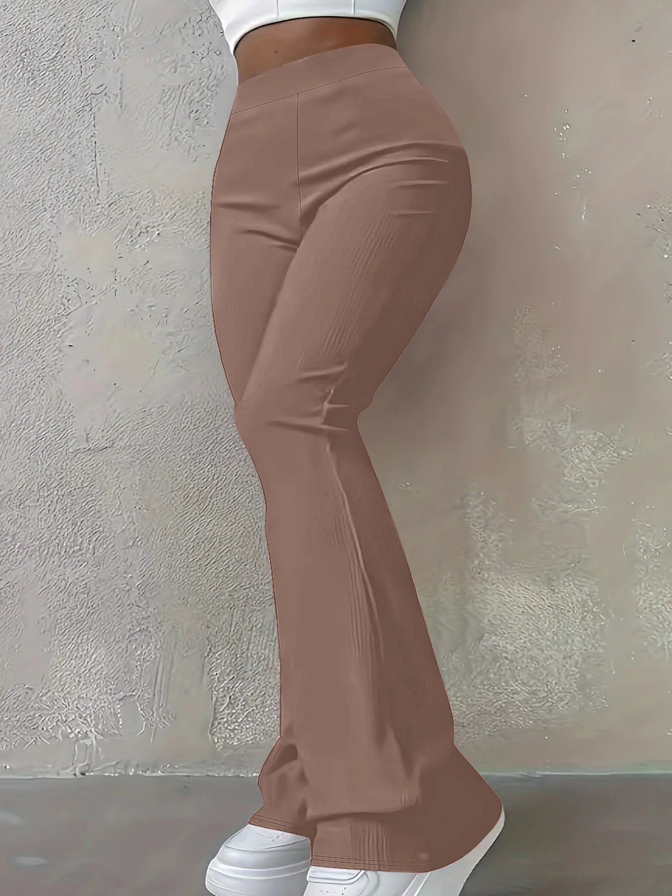 DERMEARNE Women's Clothing Autumn and Winter Casual Simple Fashion Slim Ribbed Leggings Solid Color High Waist Trousers for Women