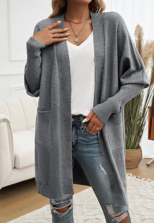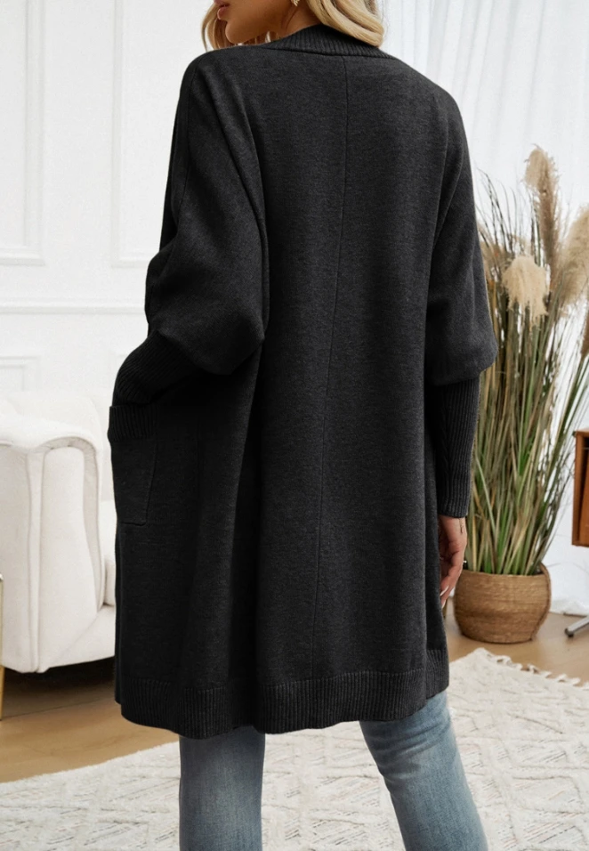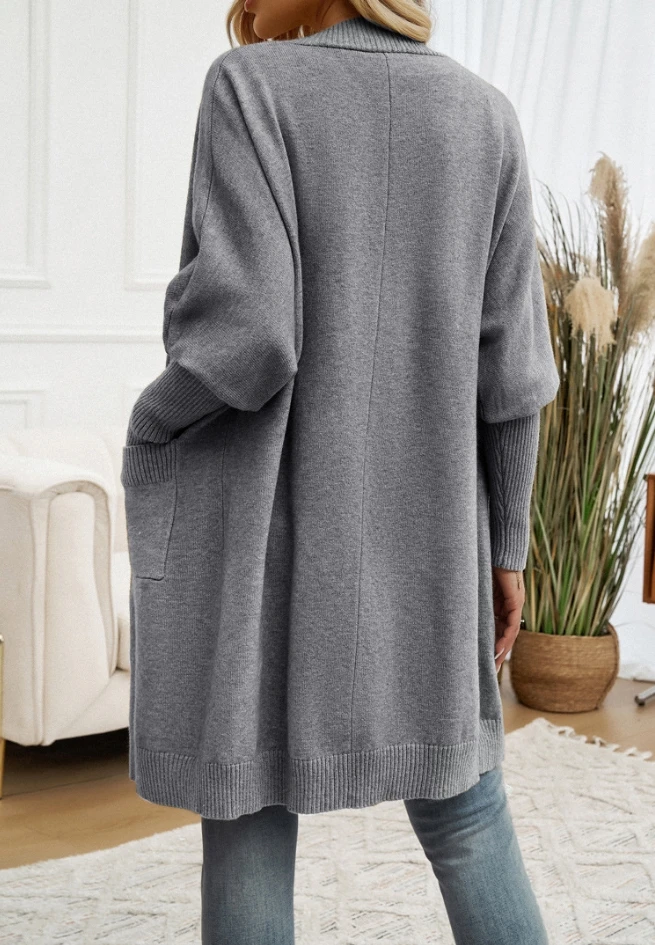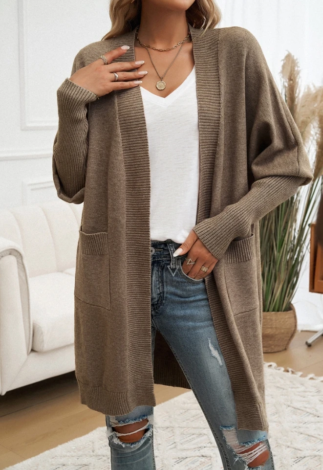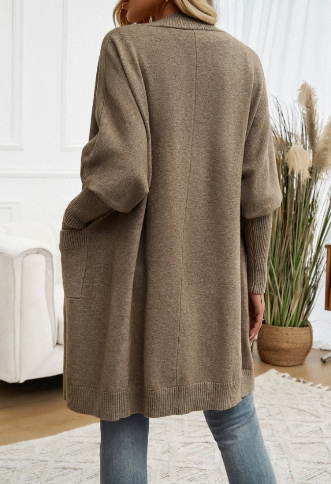 Women's Lazy Cardigan 2024 Autumn Winter Latest Bat Sleeve Temperament Pocket Solid Color Sweater Coat Jacket Open Front Top
