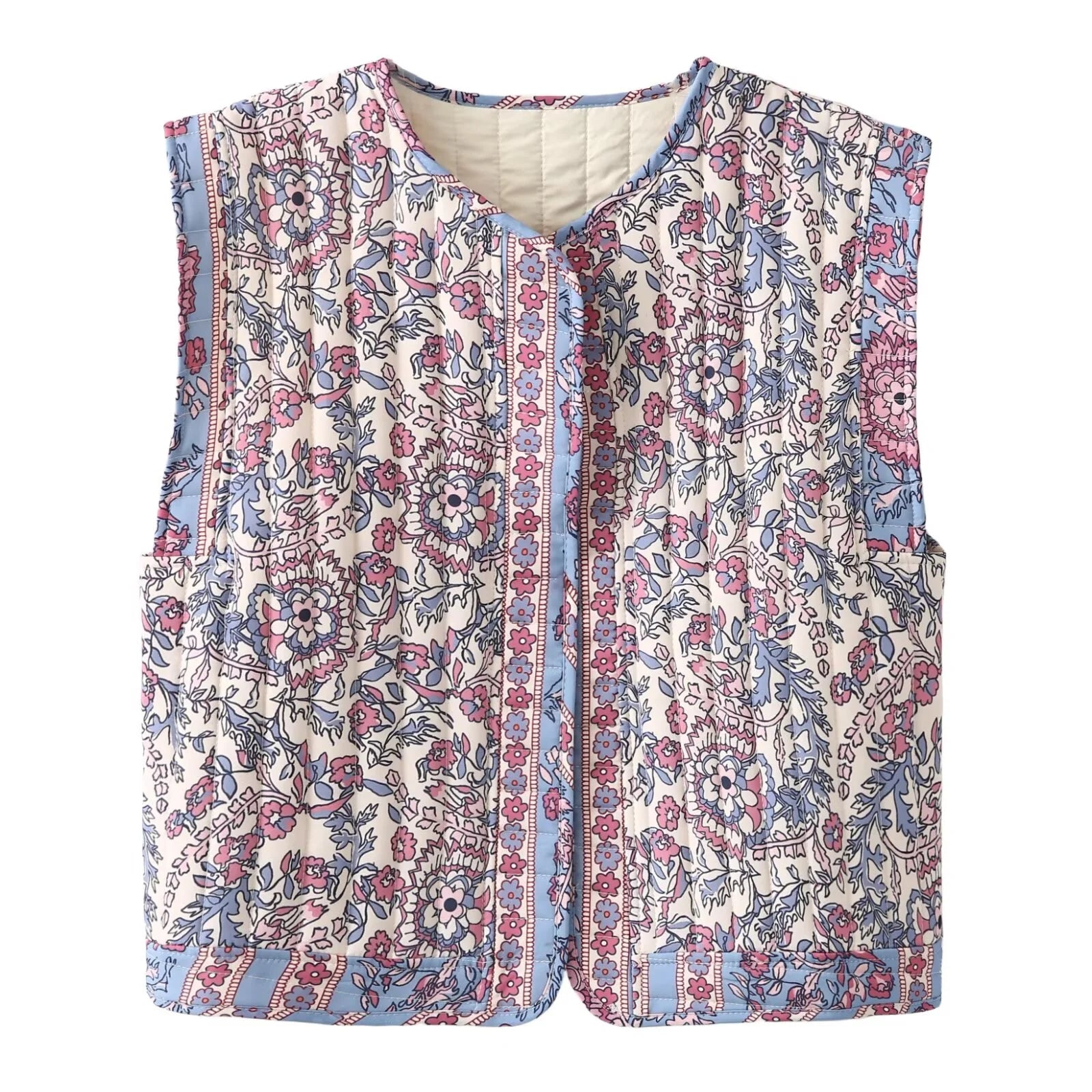 DERMEARNE Women's Printed Cotton Vest Girl's Cute and Comfortable Jacket Clothing Female's Casual Vest Lace Jacket for Girls