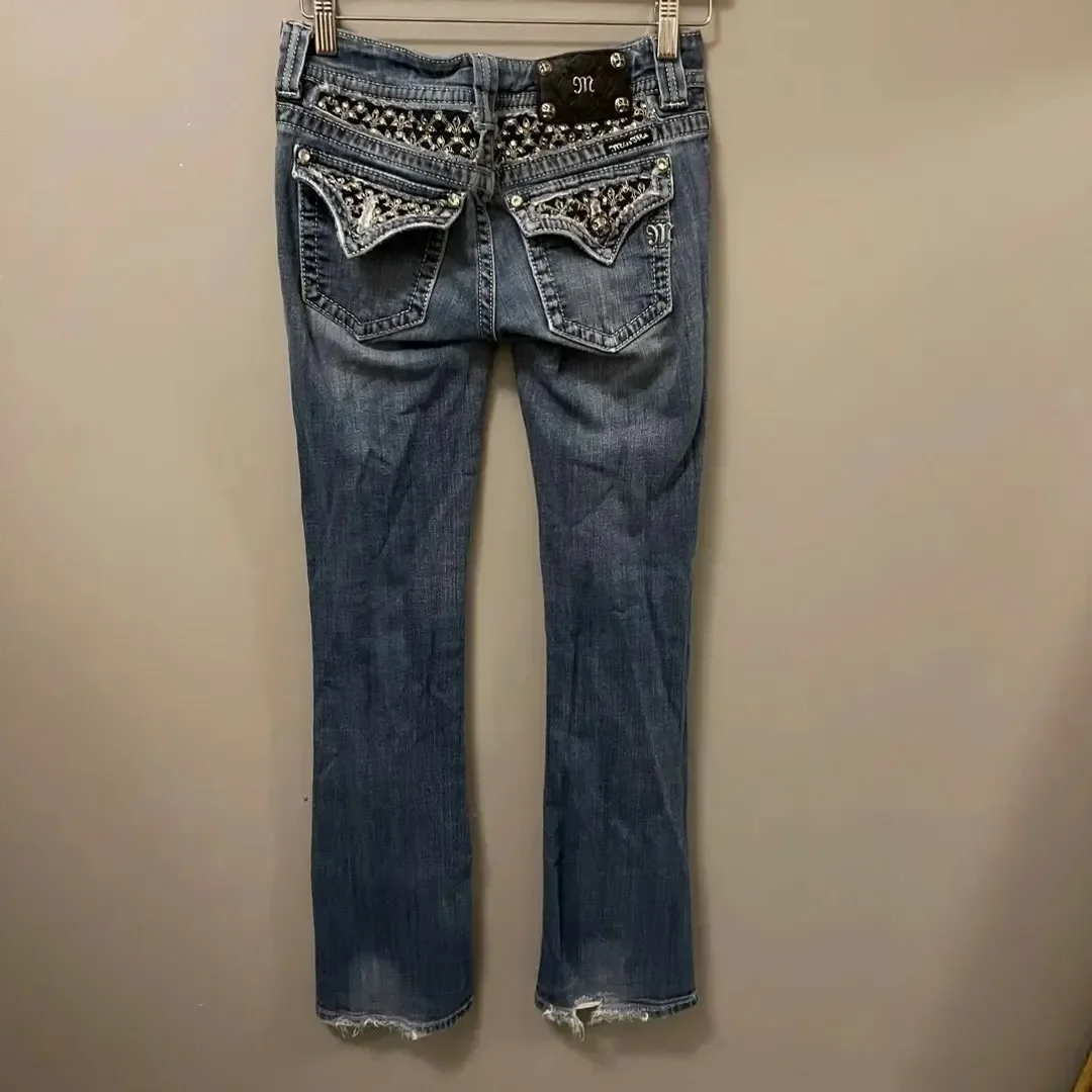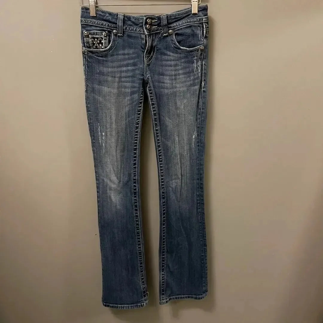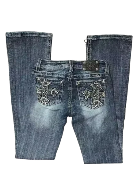 DERMEARNE Y2k American Pocket Embroidered Sequin Jeans Harajuku Retro Blue Loose Jeans New Fashionable High Waisted Slim Fit Flared Pants