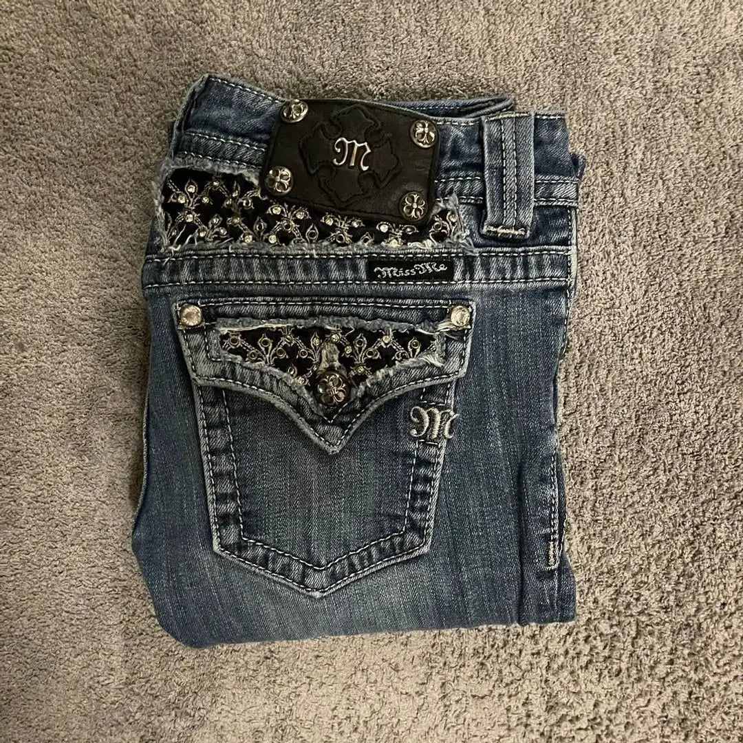 Y2k American Pocket Embroidered Sequin Jeans Harajuku Retro Blue Loose Jeans New Fashionable High Waisted Slim Fit Flared Pants