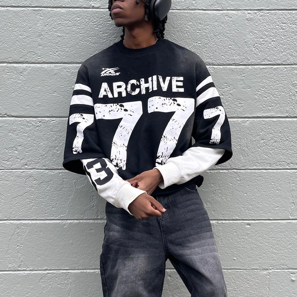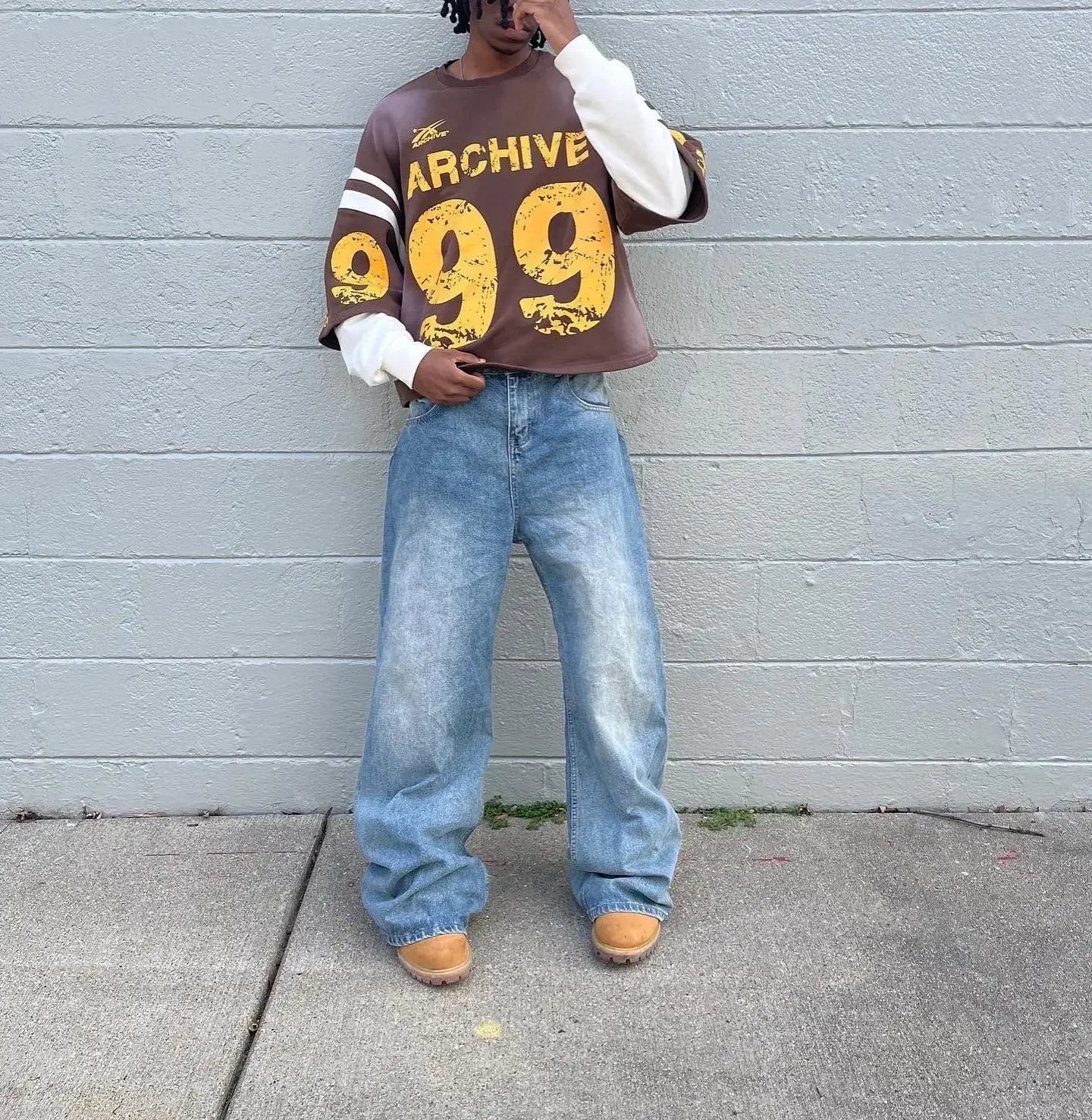 DERMEARNE Y2K Men Women Retro Harajuku Punk Casual Splicing Sweatshirt New Fashion Street Design Fake Two Piece Hip Hop Loose Long Sleeves