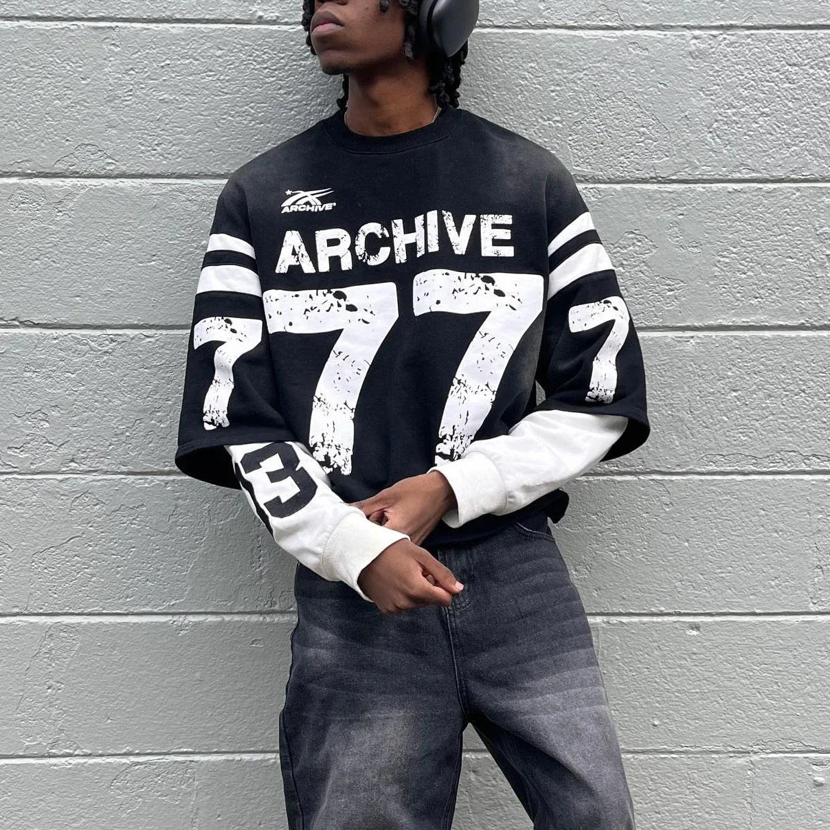 Y2K Men Women Retro Harajuku Punk Casual Splicing Sweatshirt New Fashion Street Design Fake Two Piece Hip Hop Loose Long Sleeves