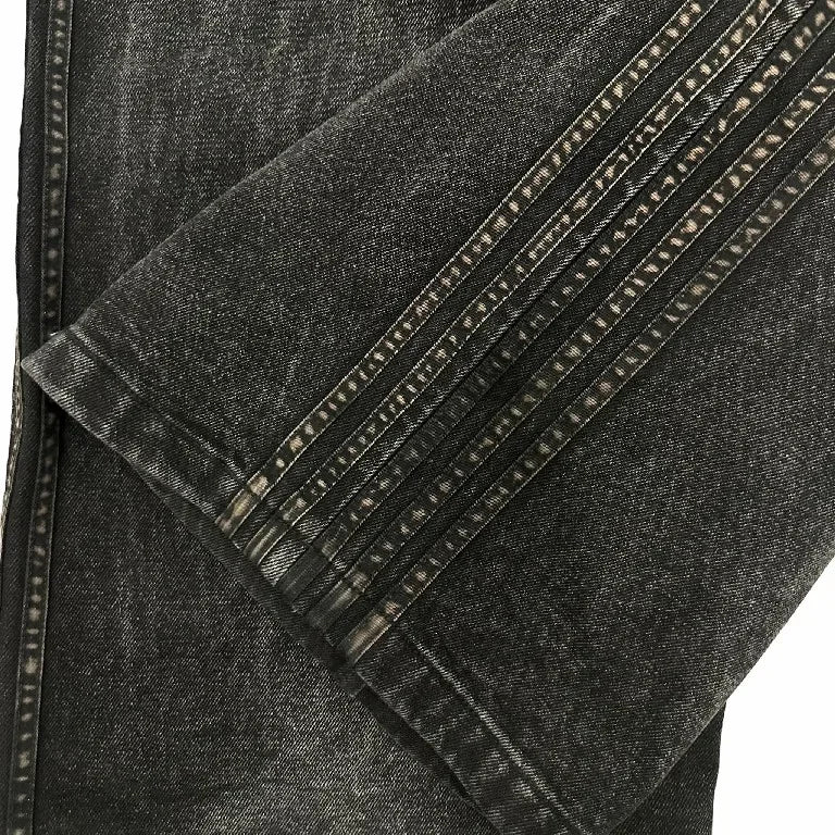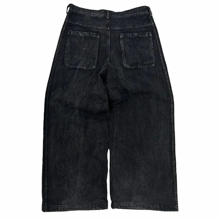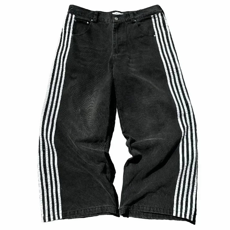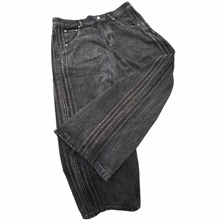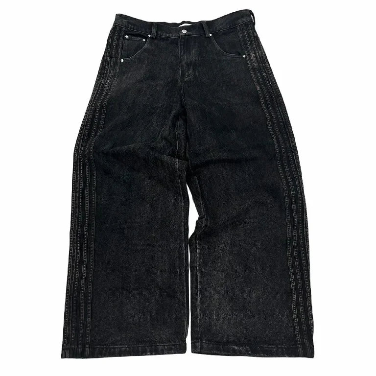 DERMEARNE Y2K Streetwear Jeans Clothes Men Women Hip Hop Retro Stripe Embroidery HCW Baggy Jeans Black Pants Wide Leg Pants