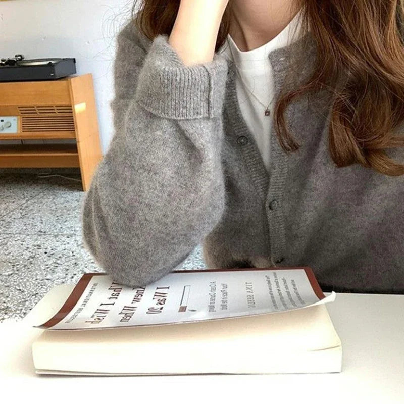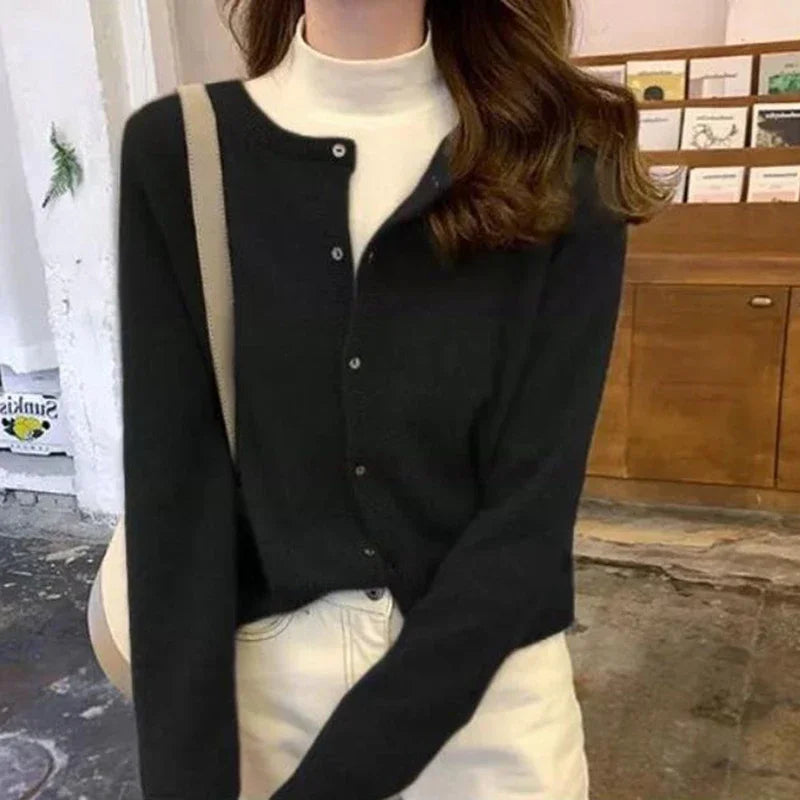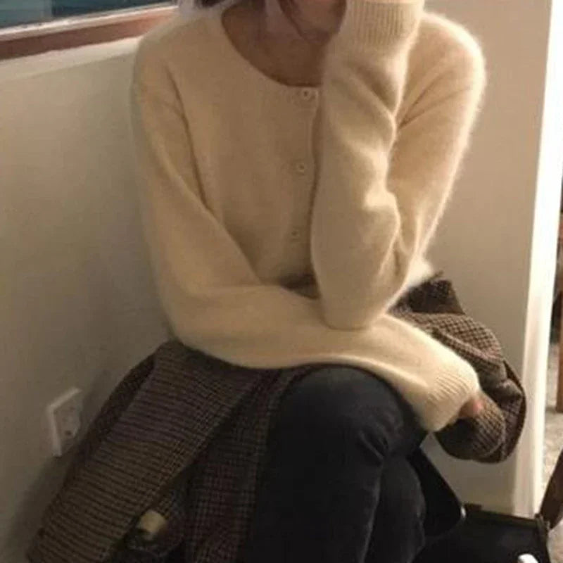 Fall Solid Color Knitted Cardigan Women Korean Single Breasted Long Sleeve Jumper Woman Round Neck All Match Sweater Outwear Top
