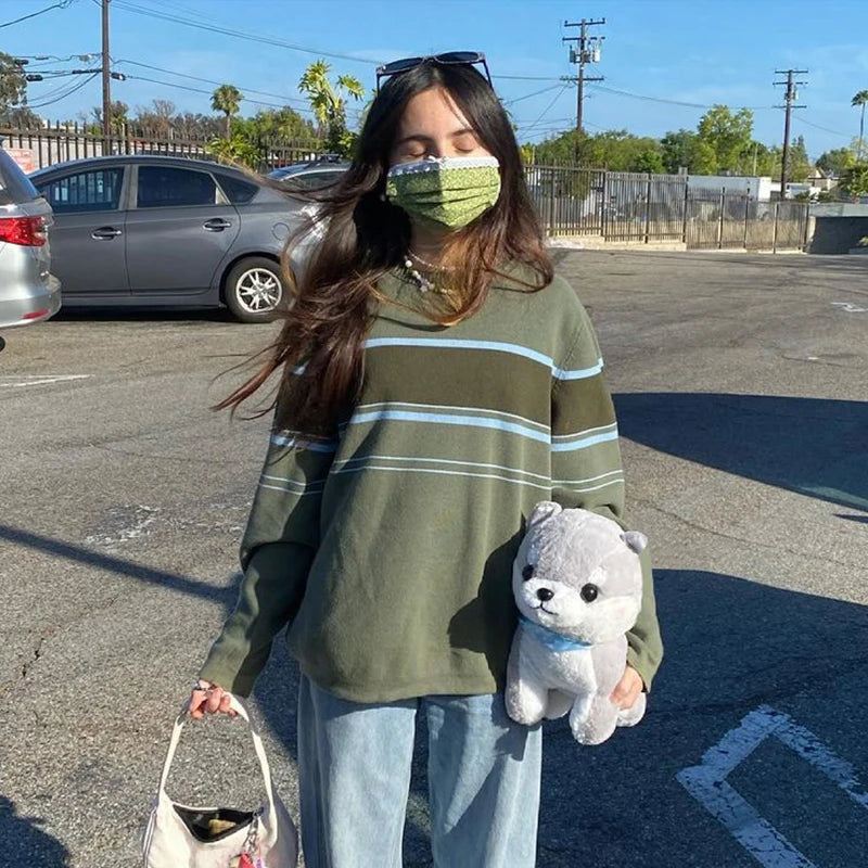 Harajuku Striped Sweater Women Long Sleeve Round Neck Pullovers Knitting Street Tops Korean Fashion Oversized Sweater