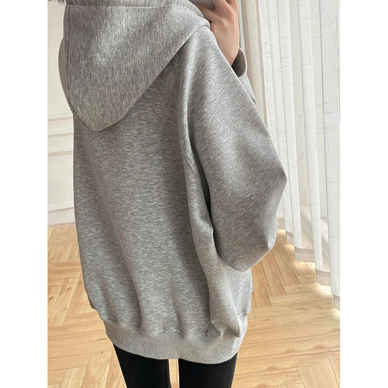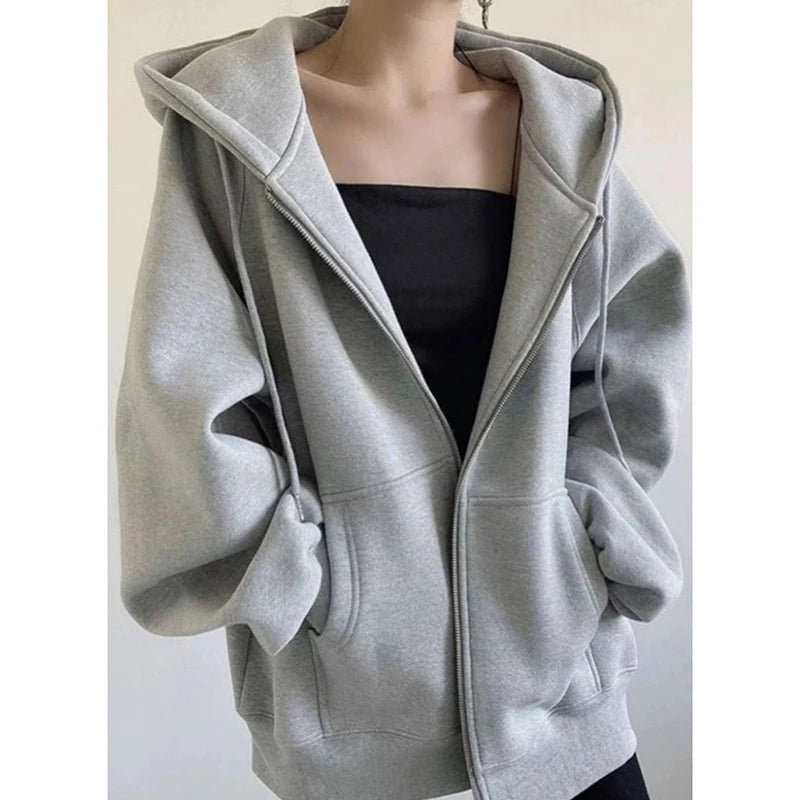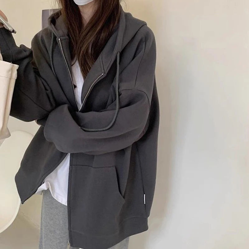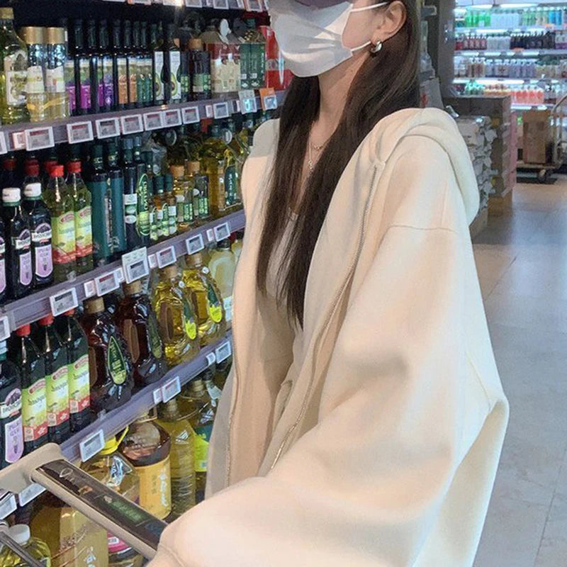 Hoodies Sweatshirt Women Cotton Loose Fashion Zipper Long-Sleeved Outwear Korean Solid Sport Harajuku Y2K Female Jacket
