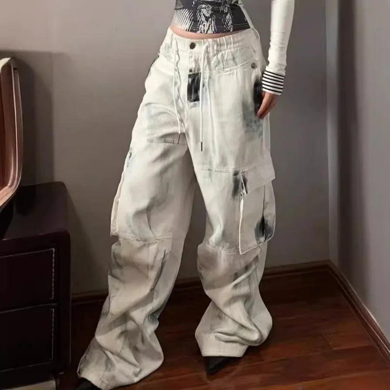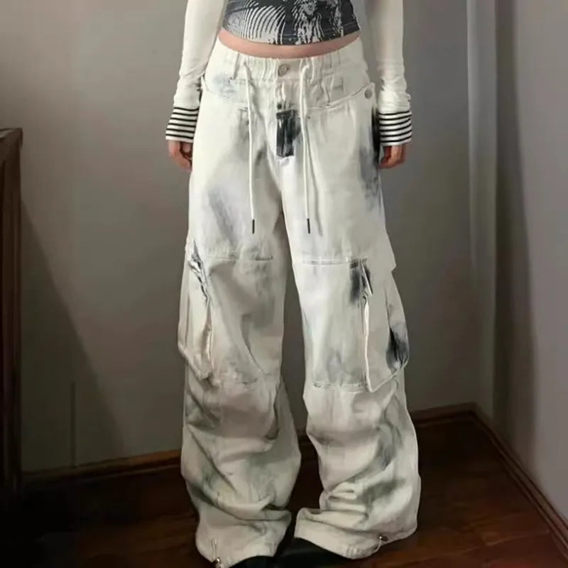 Jeans Y2K Hip-hop Cargo Jorts High Street Casual Vintage Button Baggy Denim Pants Spring Summer Fashion Wide Leg Women Clothing