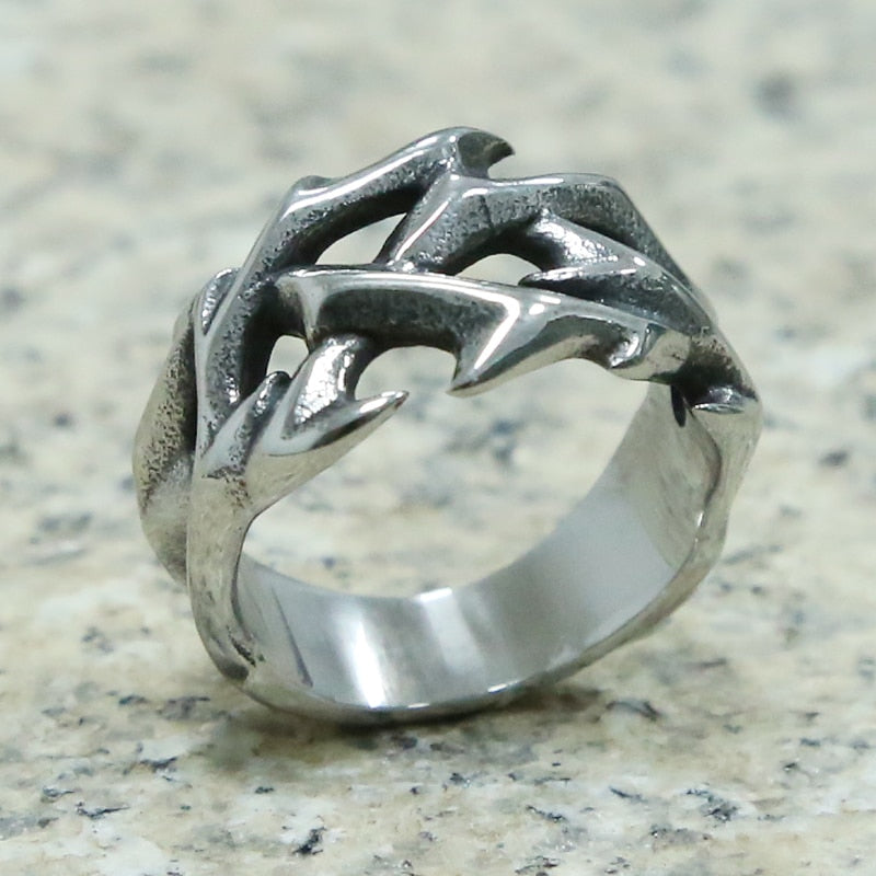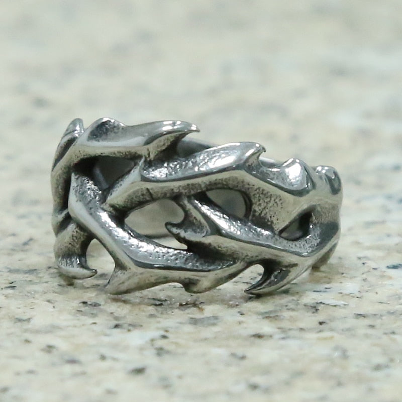 Dermearne New Trend Silver-Plated Hollow Thorn Ring Men\\'s and Women\\'s Hip-Hop Punk Party Concert Jewelry