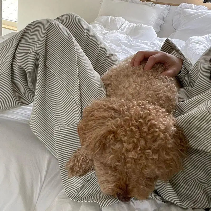Striped Sleepwear Women Pajama Sets Korean Piiama Autumn Pants Sets for Women 2 Pieces Button Night Wears Long Sleeve Home Suit