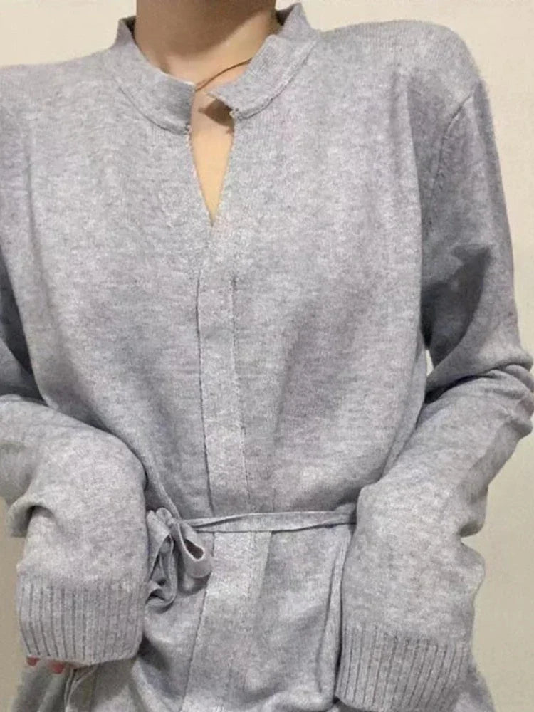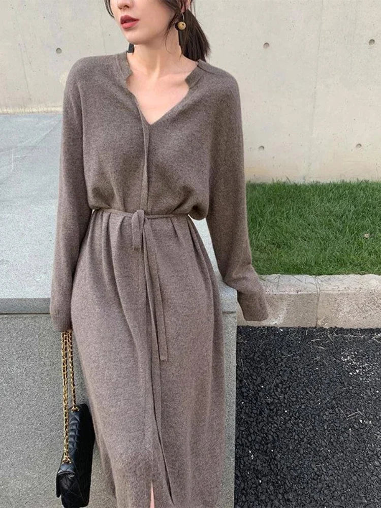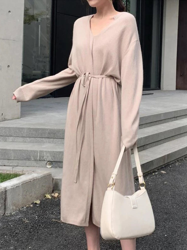 Sweater Dress for Women Autumn Winter Mid Length Underlay Outwear Over Knee Drawstring Waist Elegant Knit Dress Women's Clothing
