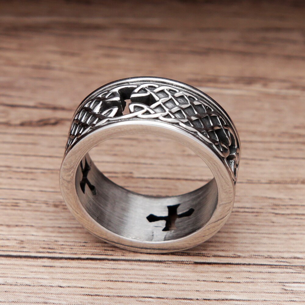 Dermearne Unique Nordic Vikings Amulet Ring Men's Fashion Vintage Stainless Steel Celtic Knot Biker Ring Amulet Jewelry Gift Wholesale