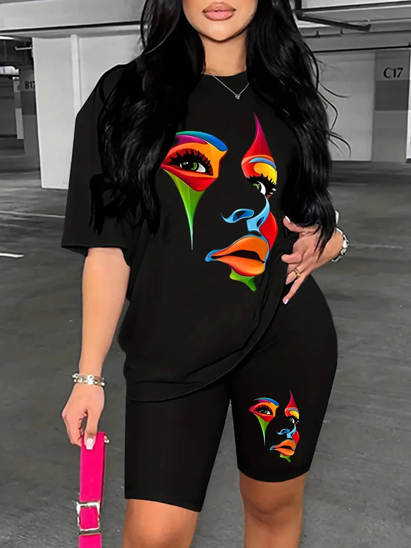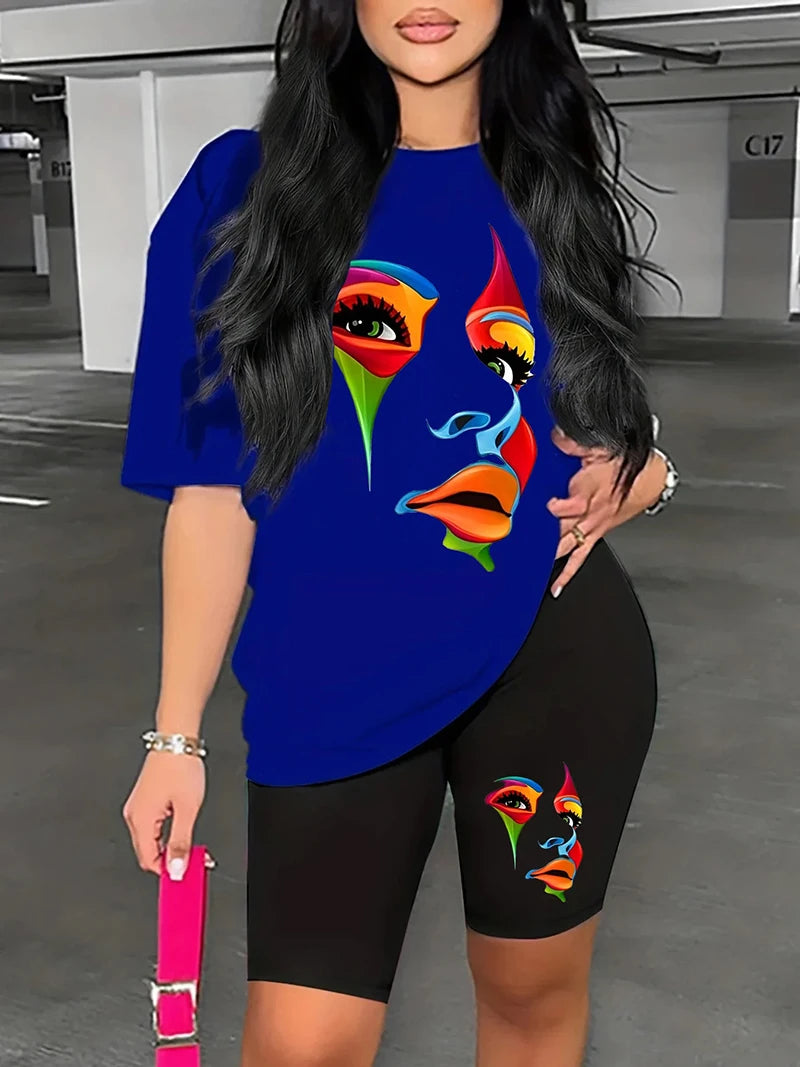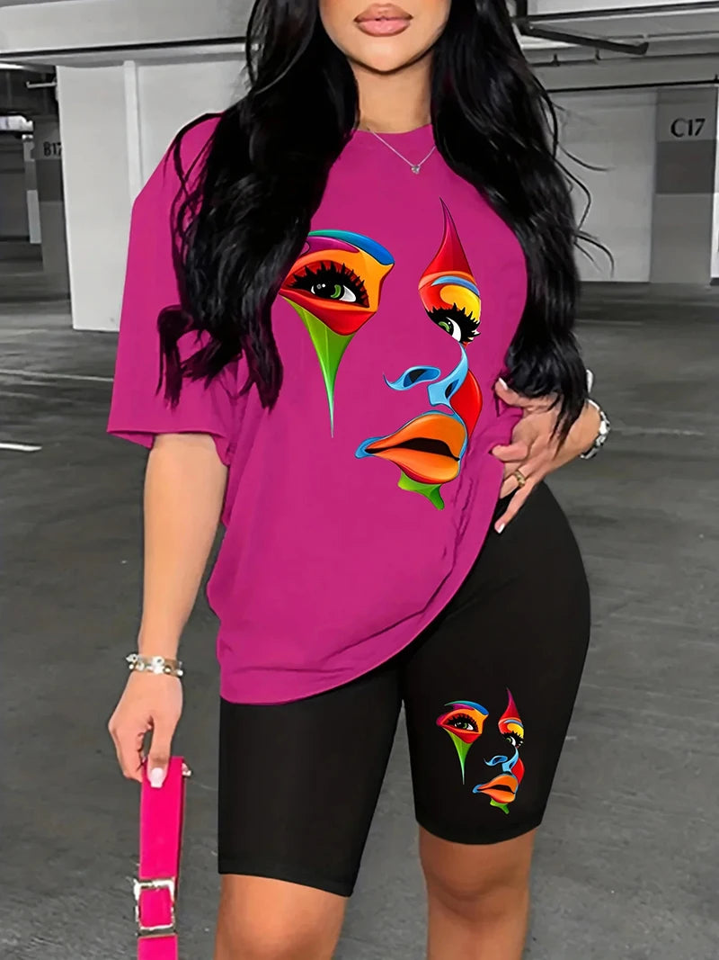 Wholesale high quality womens summer clothes printed cute elegant suit fitness top shorts 2 sets travel women's suit