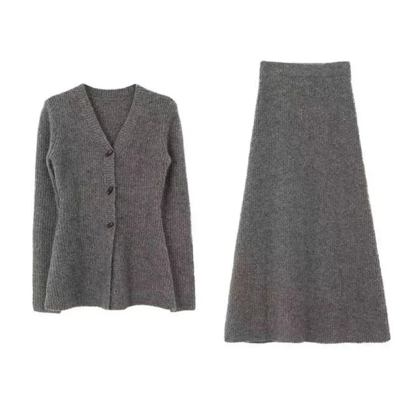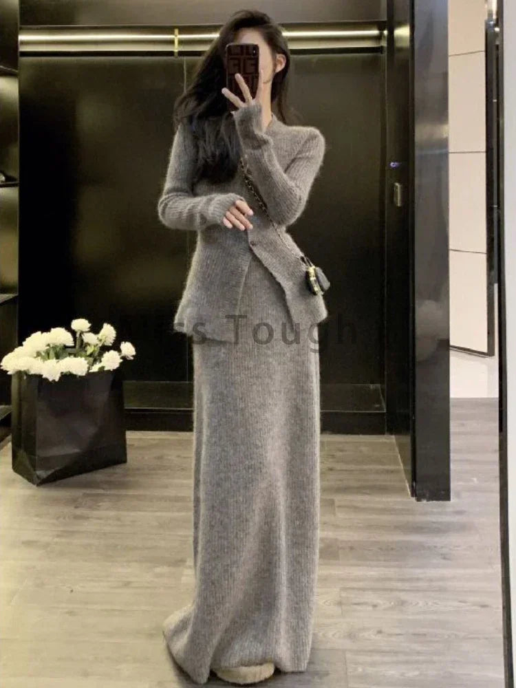 Winter Vintage Elegant 2 Piece Set Women V-neck Y2k Chic Kintted Skirt Suit Female Korean Fashion Casual Retro Sweater Set 2024