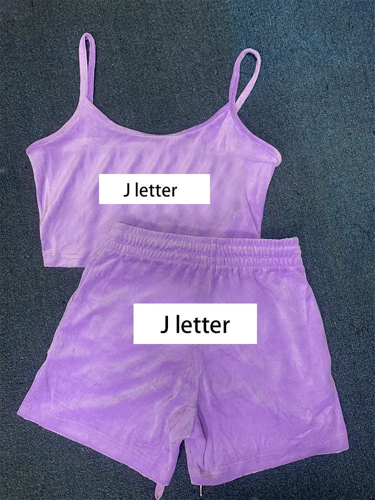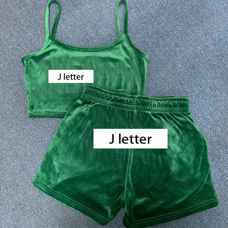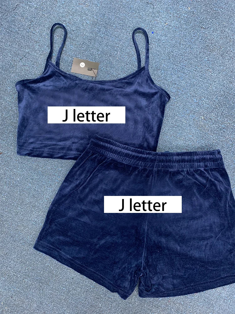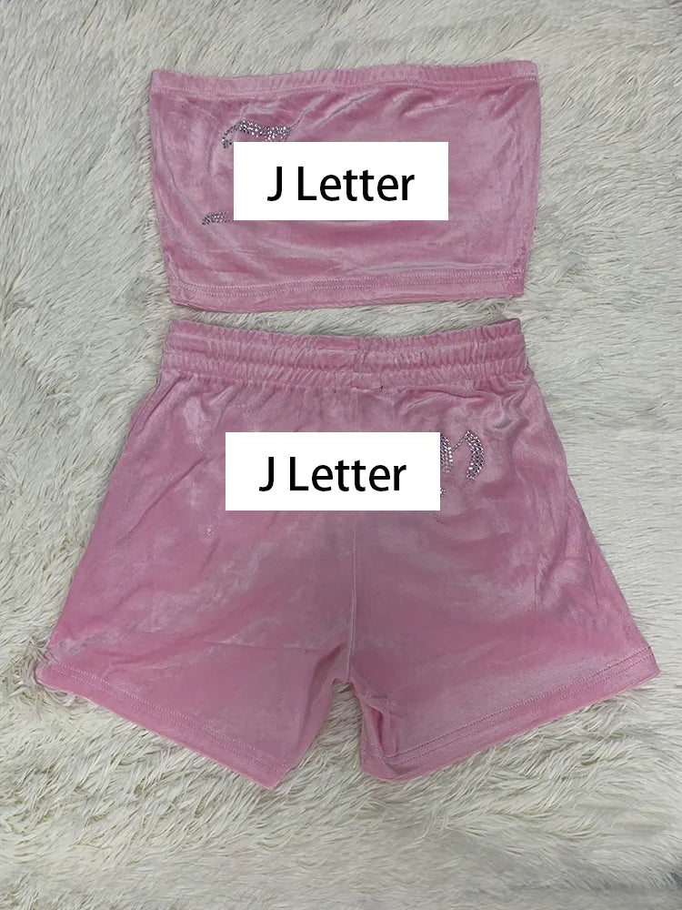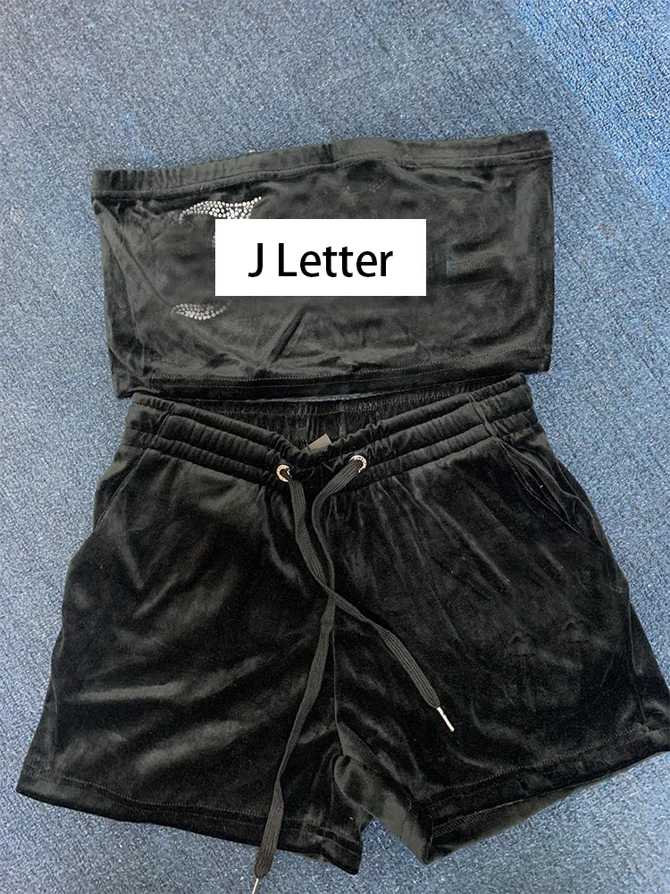 Women 2 Pieces Short Sets Velvet Tracksuit Strapless Top and Drawstring Shorts New in Matching Outfits for Summer