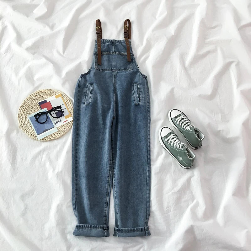 Women Denim Jumpsuits Vintage Blue Adjustable Straps Loose Straight Overalls Spring Autumn Female Casual Jeans