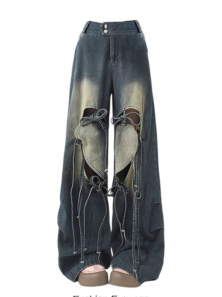 Women Japanese Harajuku Dark Academia Chic Jeans Baggy Grunge Harajuku Denim Pants Cyber Punk Hip-pop Y2k 2000s Aesthetic Hole