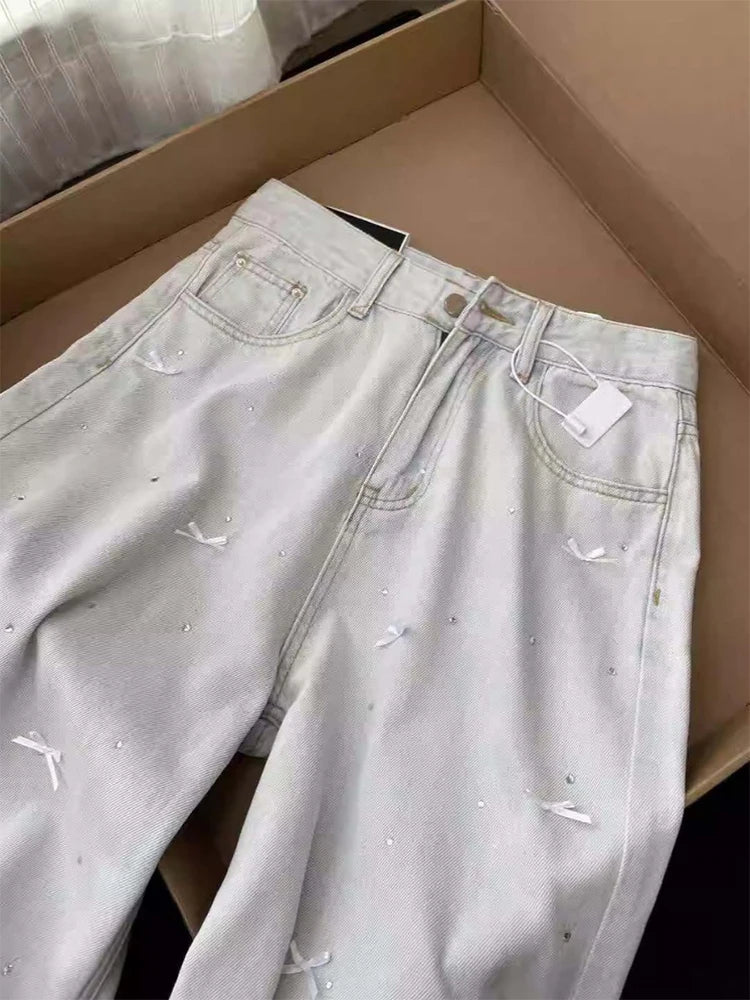 DERMEARNE Women's Light Blue Baggy Bow Jeans Harajuku Aesthetic Denim Trousers Y2k Vintage Japanese 2000s Style Jean Pants Trashy Clothes