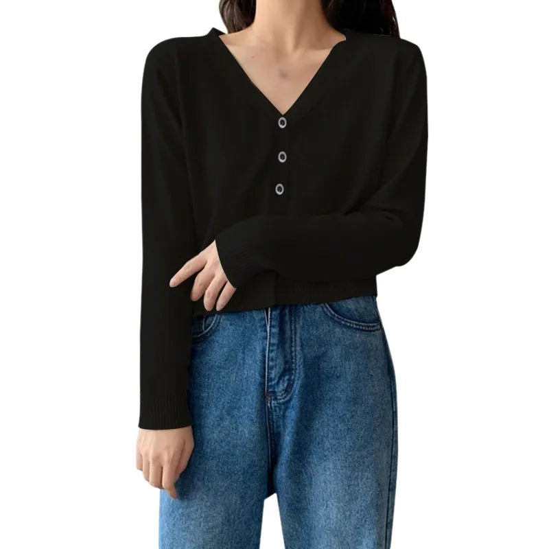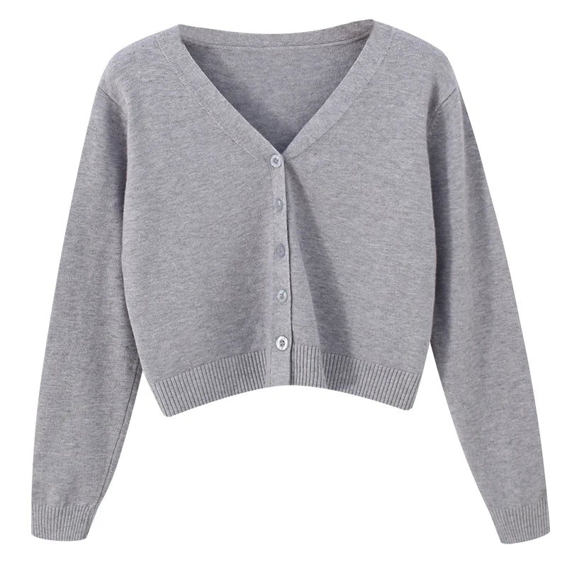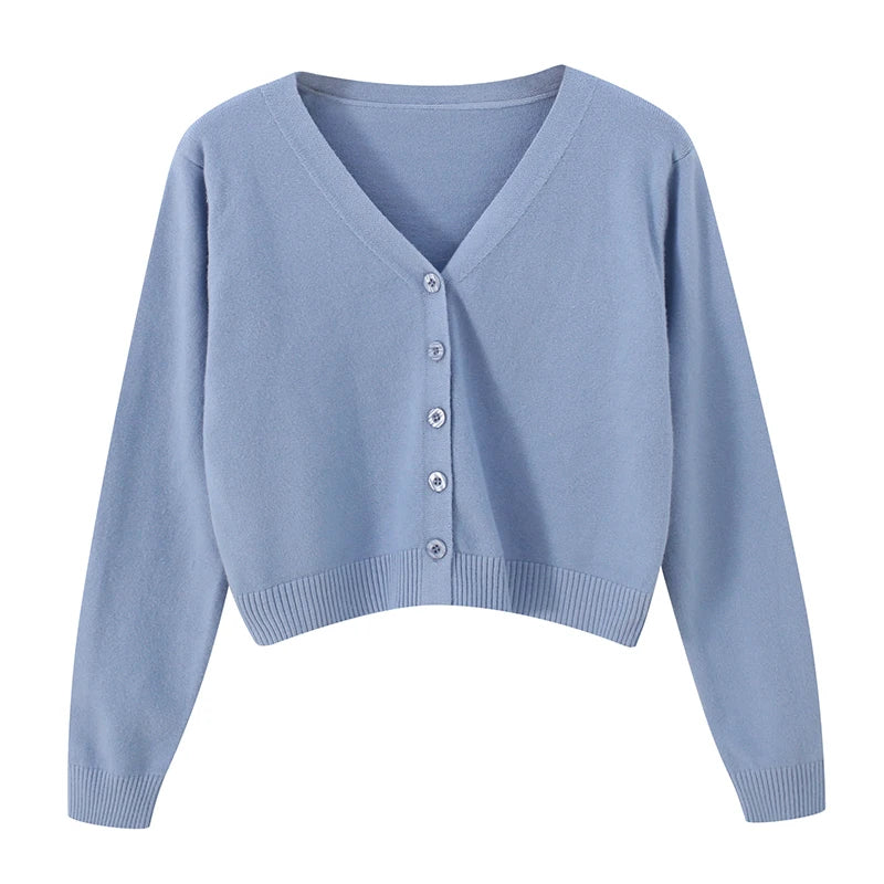 Women's Long Sleeve Cropped Cardigan V Neck Button Down Knit Lady Autumn Winter Knit Single-breasted Cardigan Sweaters