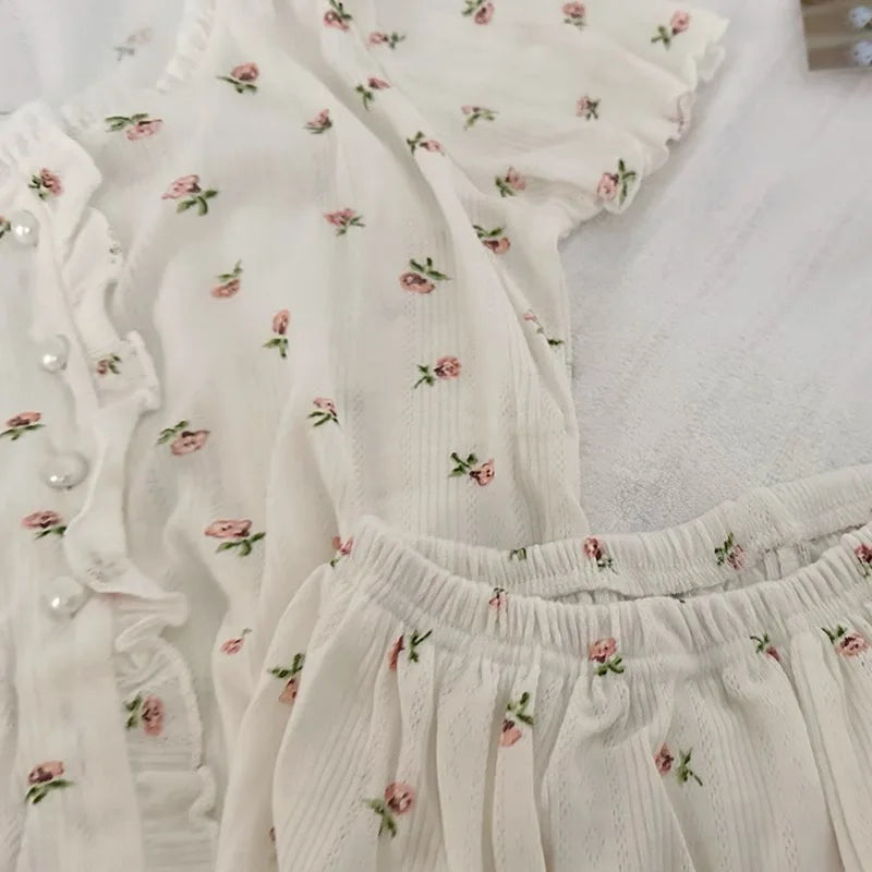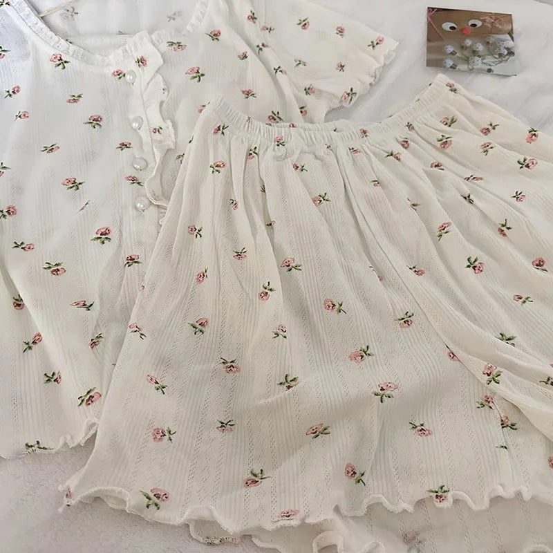 Women's Pajamas Sets Spring Summer Sleepwear 2 Piece Floral Pyjama Short Sleeve Top Shorts Pijama Mujer Pjs Homewear Housewear