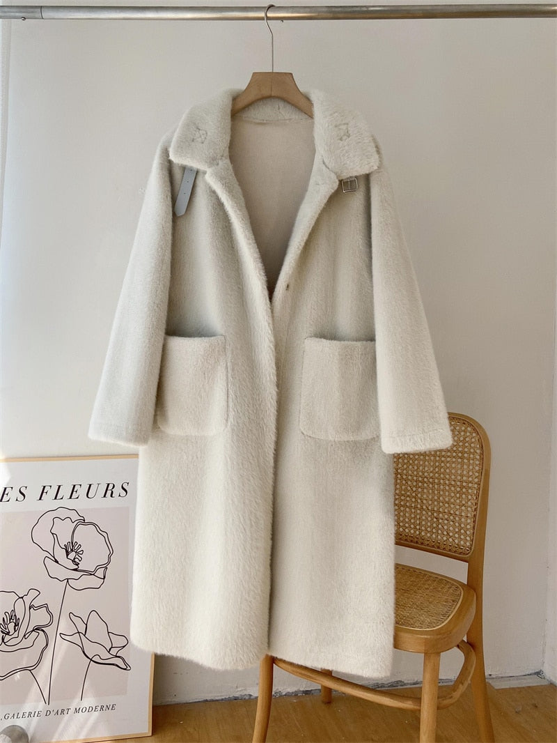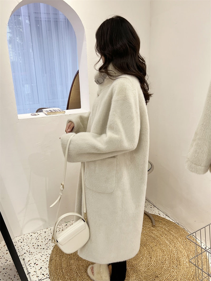 Women's Winter Coat Long Loose Warm Stand-up Collar Mink Velvet Faux Fur Jacket Women Veste Femme Clothes Fashion Coats
