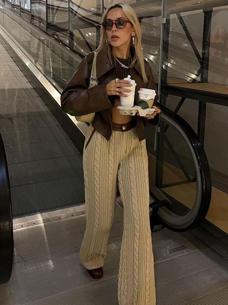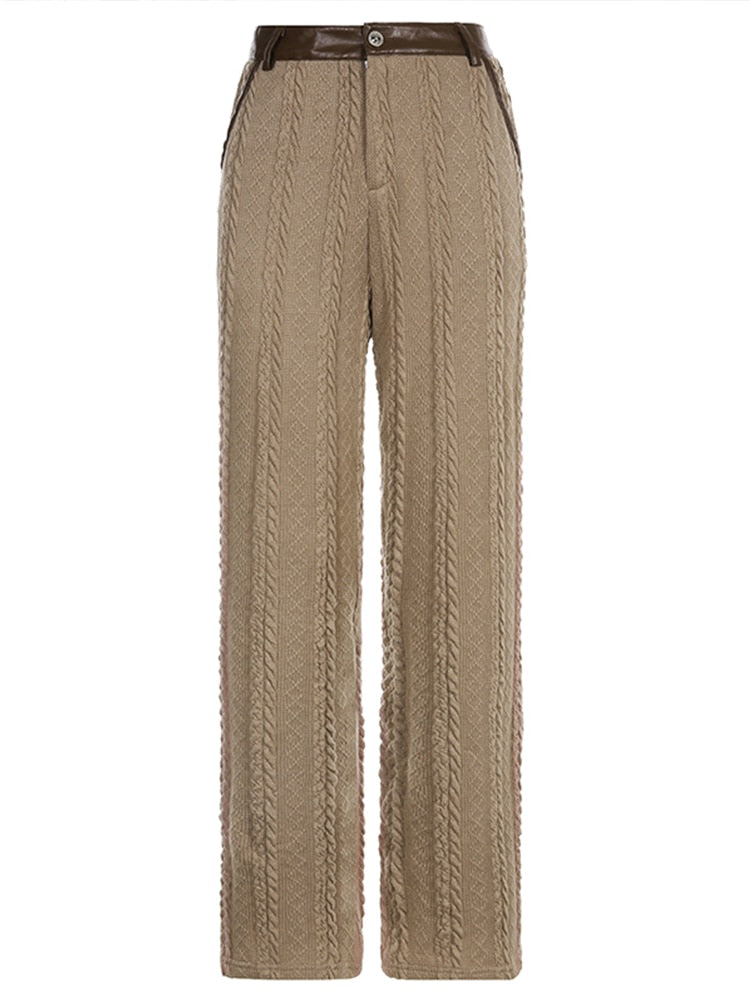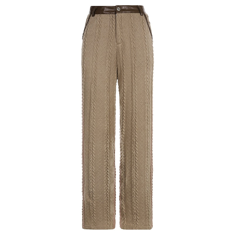 Dermearne y2k Twist Knitted Trousers Baggy Straight High Waisted Pants Women Retro Patched Button Joggers Khaki Harajuku Casual