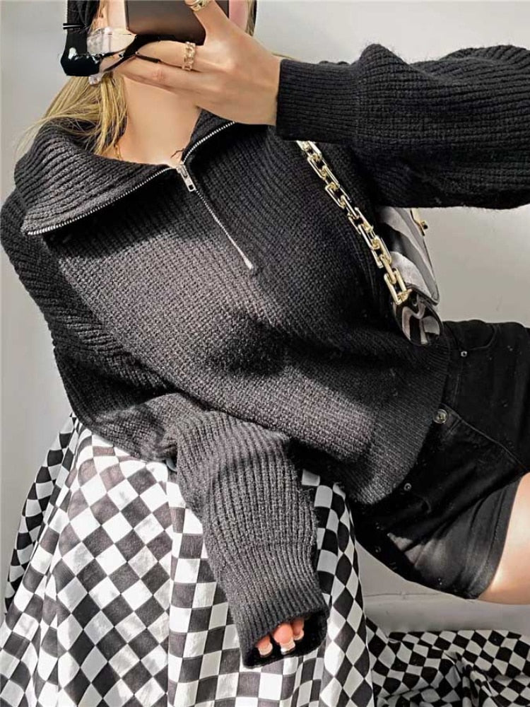 Zipper Fashion Women Sweaters Solid Loose Knitted Long Sleeve Women's Sweater Warm Autumn/Winter Oversized Sweater Women