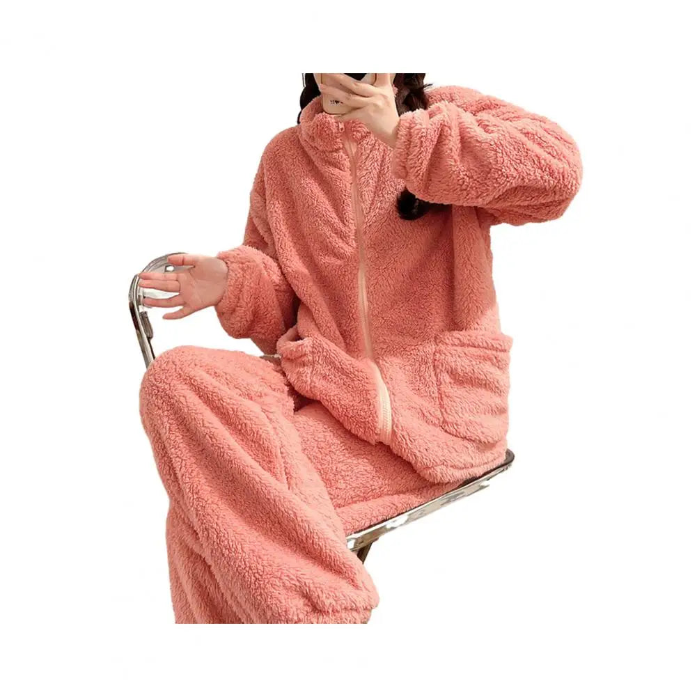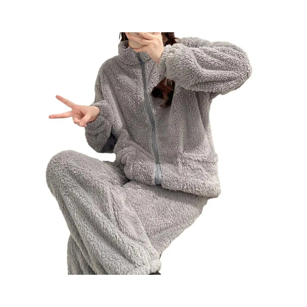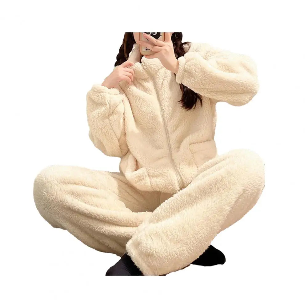 Zipper Women Warm 2 Piece Sets Thicken Velvet Ribbed Fleece Set Pullover and Pants Casual Pajama Sets Women Autumn Winter 2024