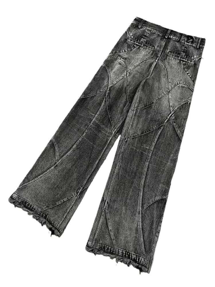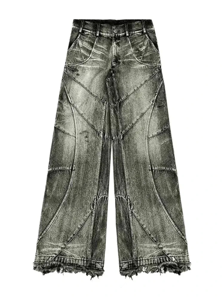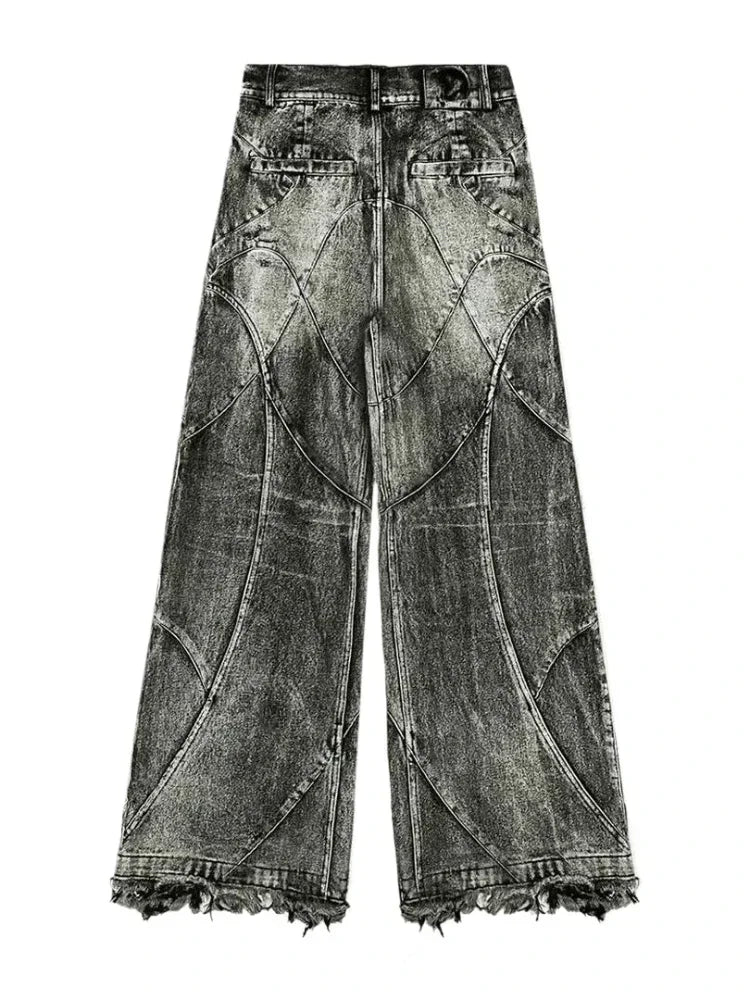 DERMEARNE Vintage Y2k Streetwear Punk Hip Hop Jeans Women Pants Grunge Baggy Ripped Denim Trousers Gothic Distressed Wide Leg Jeans Goth