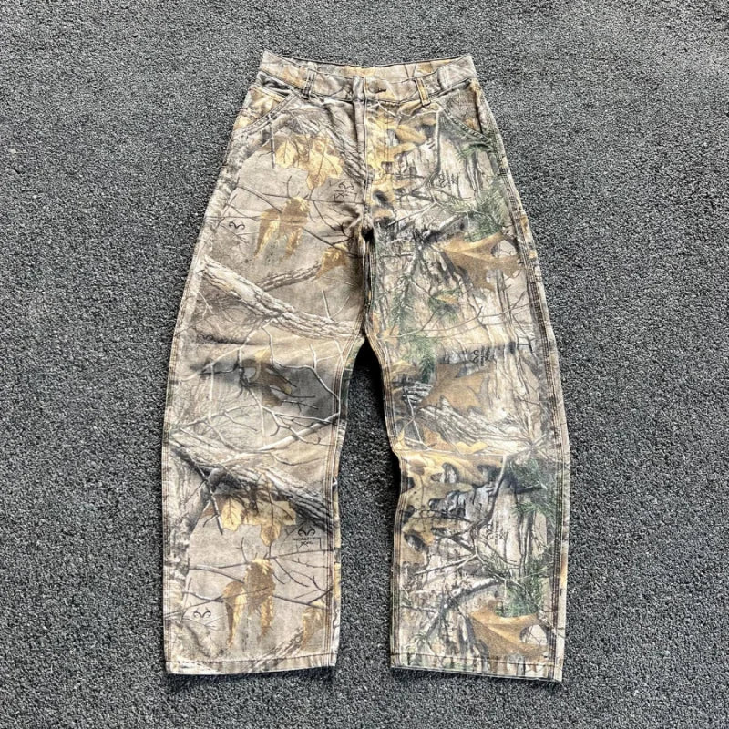 Dermearne Y2k Jeans New America Street Camouflage Pattern Baggy Denim Pants Fashion Women Clothing High Waist Straight Leg Wide Leg Jeans